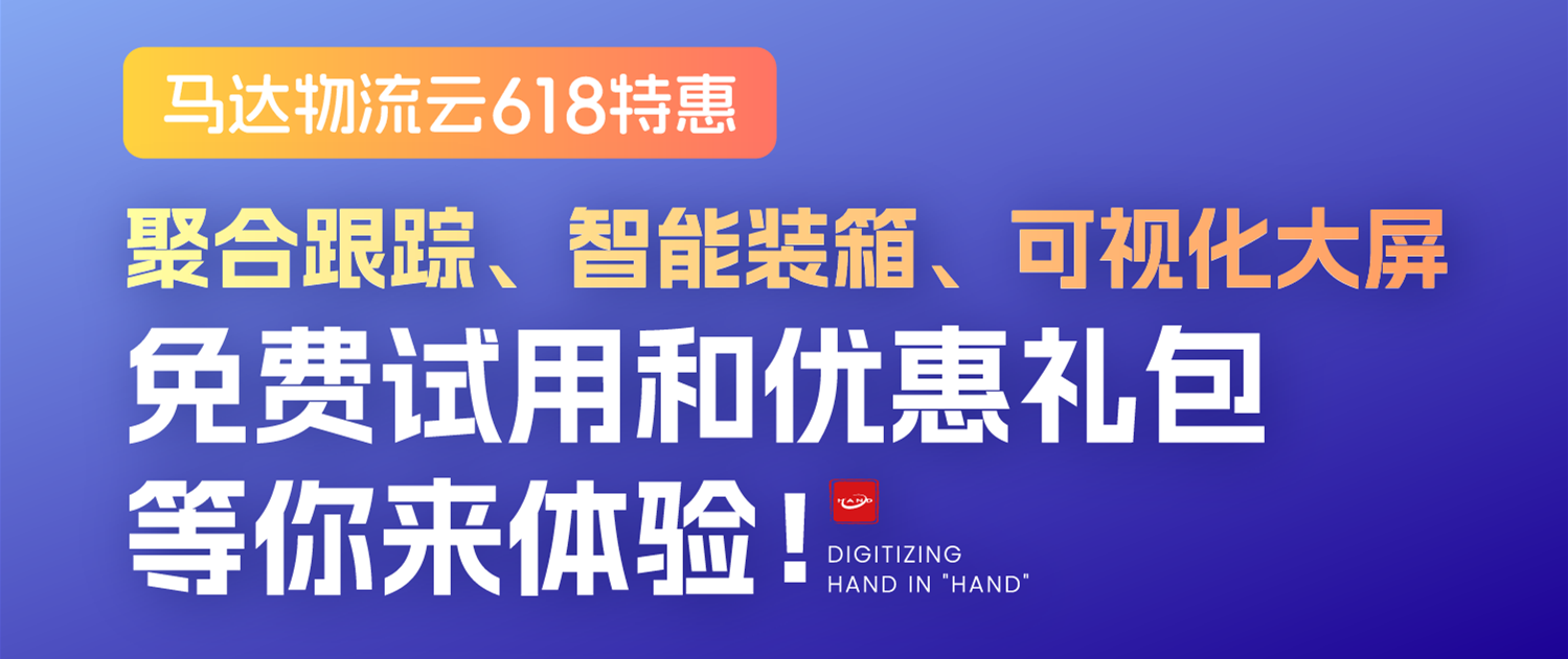 马达物流云为您提供全面的物流供应链数字化产品服务,助您实现物流运营的优化与升级。在本次618特惠活动中,您可免费试用我们的聚合跟踪、智能装箱和可视化大屏服务,同时还有精心准备的优惠礼包等您来领取。