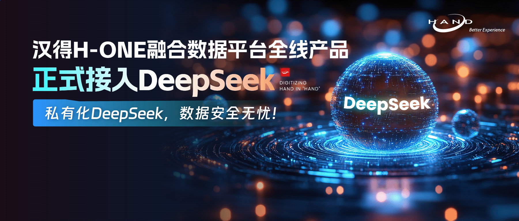 H-ONE融合数据平台,包括有主数据平台HMDP、数据中台HDSP、智能问数产品ChatBI三大产品,通过DeepSeek的接入,将全面提升产品在智能化方面的表现能力!