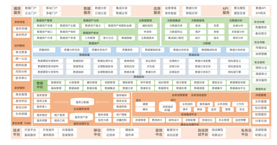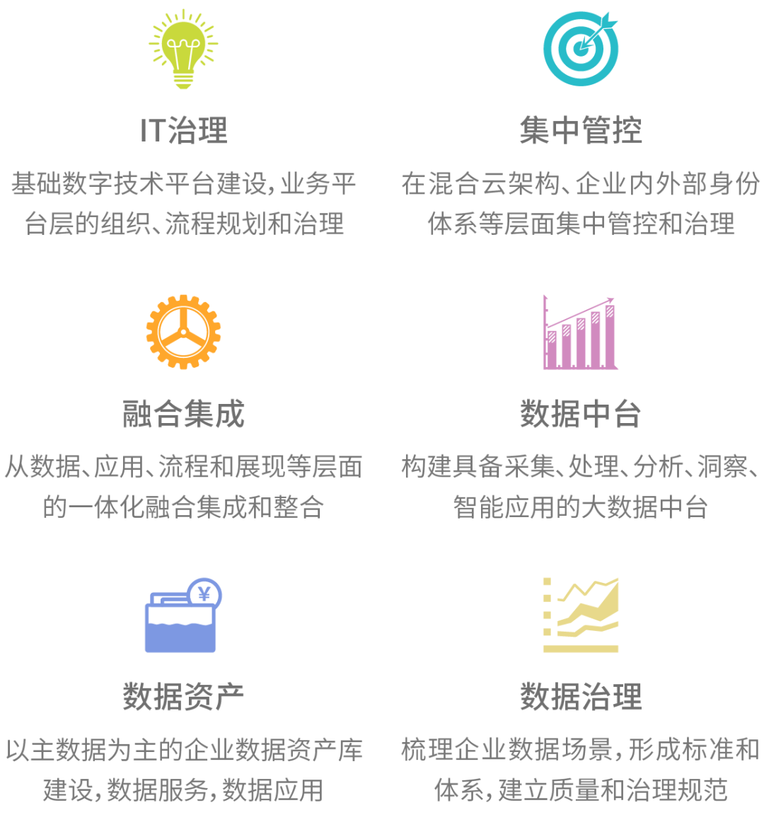 究其数字化的本质,应该就是以数字化技术为基础,并以数据为核心来组织我们的流程和产品架构,以进一步提升企业综合竞争力和大规模精益创新的能力。基于此,越来越多的企业在信息化建设中开始重视IT治理和数据治理等基础治理业务,尝试通过构建企业统一基础架构和数据治理平台,支撑和促进企业的升级与快速转型。