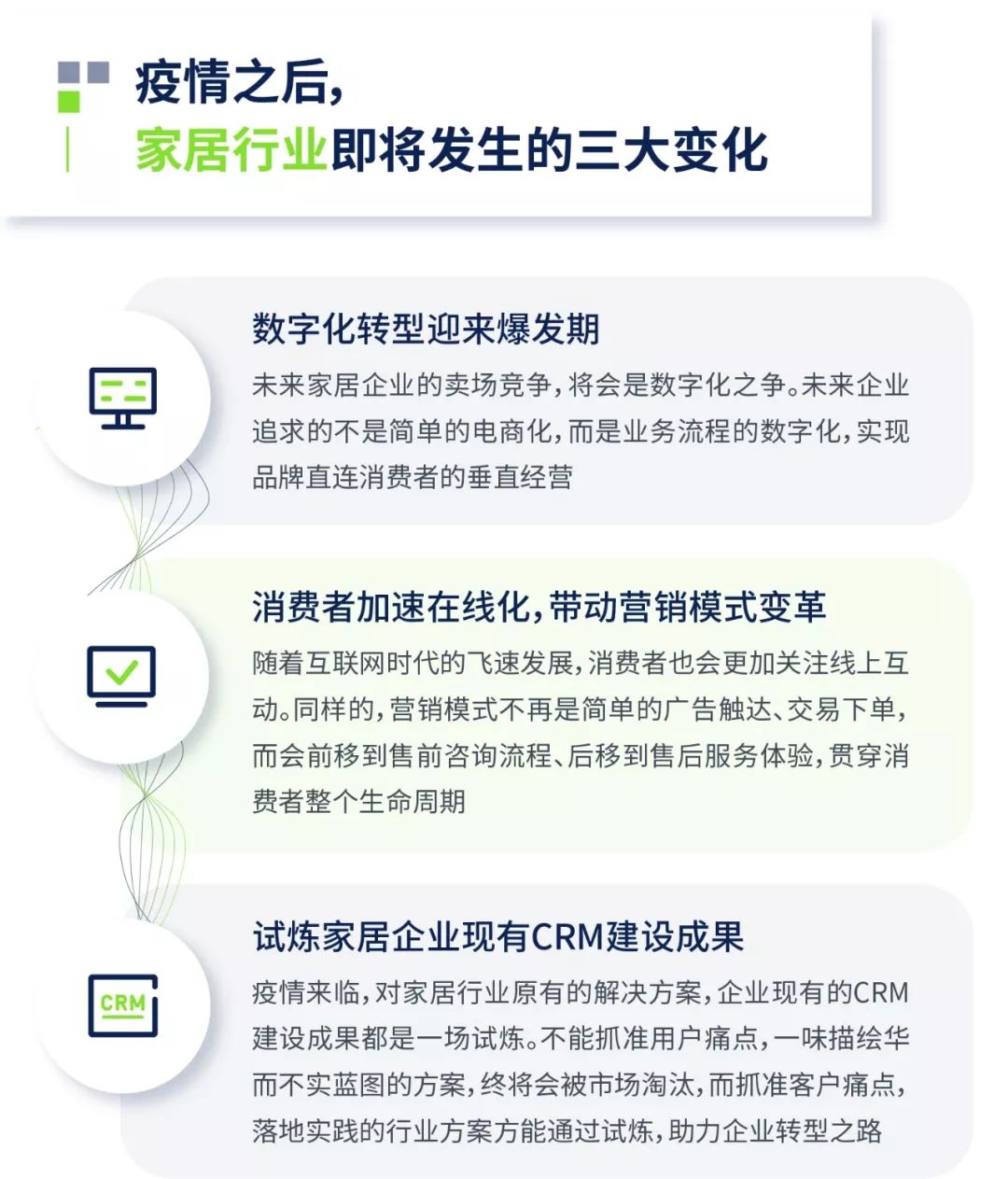我们要相信,疫情之后一定会为家居行业的发展带来新的契机、新的改变,越来越多的企业会加速线上转型,更多的经销商会依赖于具备强大数字化能力的品牌商。