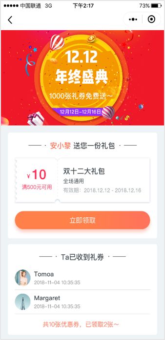 在小程序、公众号等平台发布现金红包、大转盘、优惠券、邀请有礼、新人礼包、分享领券等多种营销活动,与消费者实现良性互动。