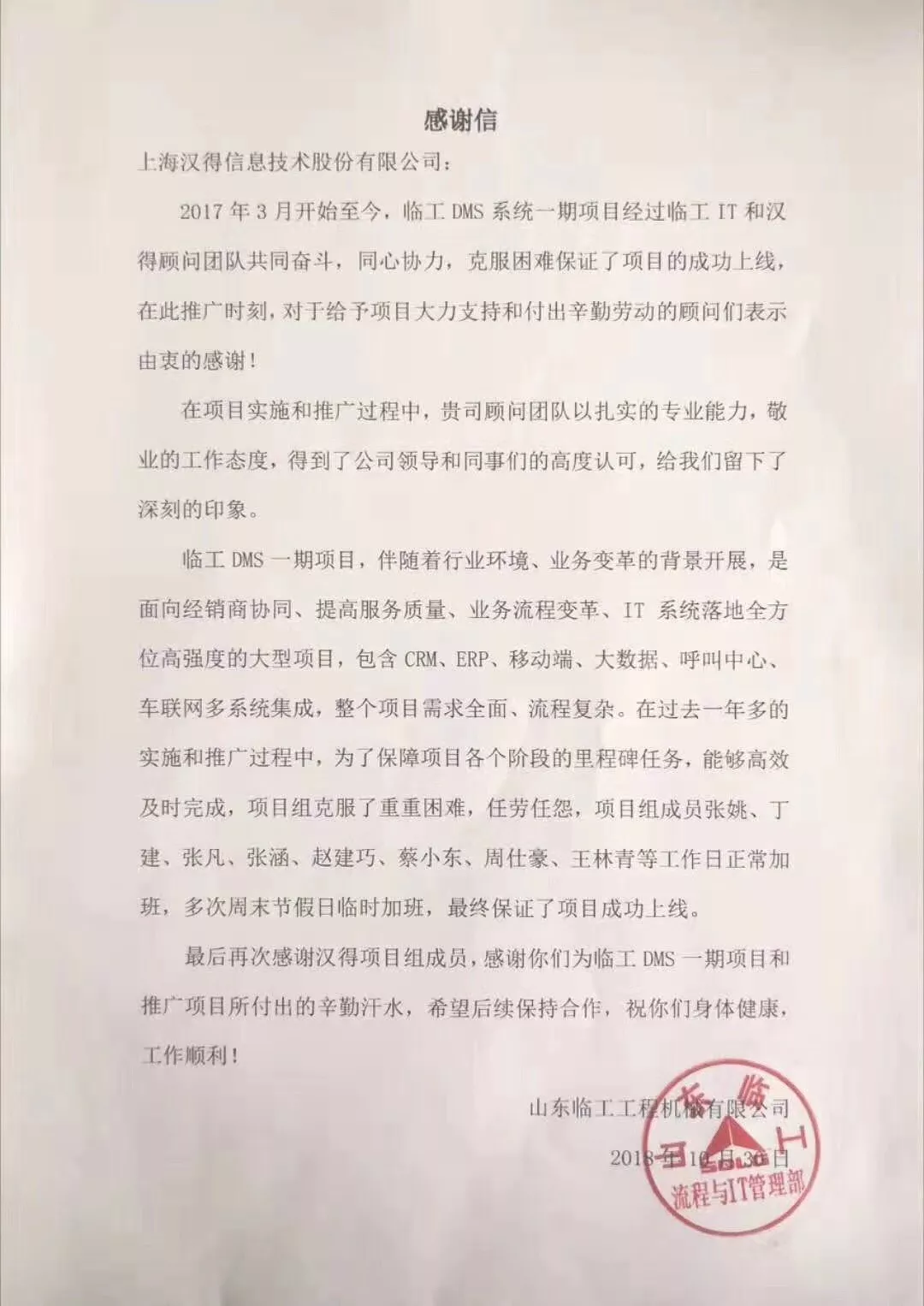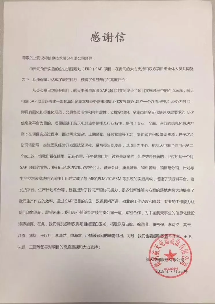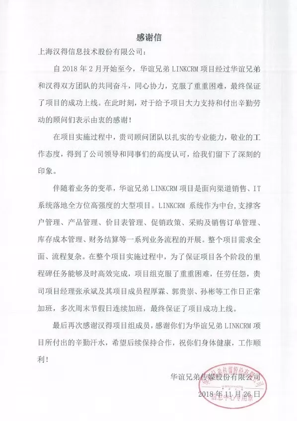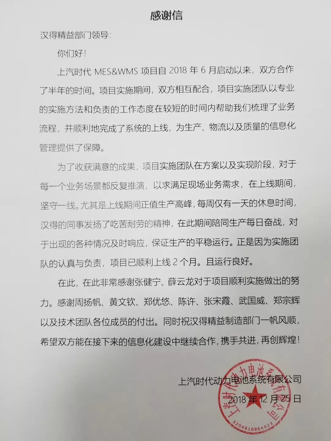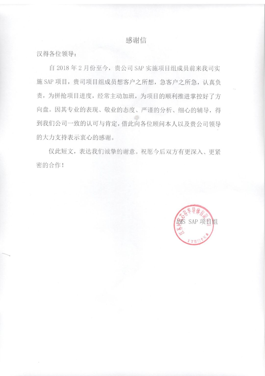 「 在2018年客户寄给k8凯发官网的感谢信 」