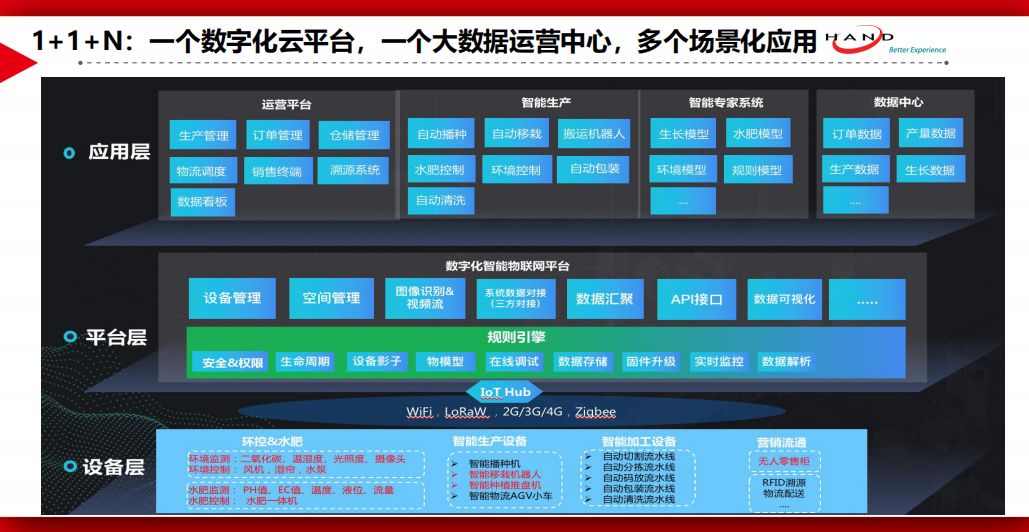 ? 在实现“机器换人”中,k8凯发官网物联网团队开发了播种育苗自动化、移栽机器人、栽培专家系统、生产物流自动化、智慧水肥灌溉、环境管控、绿色防控、分拣加工包装自动化、清洁自动化、质量追溯、营销管理等系统及软件。