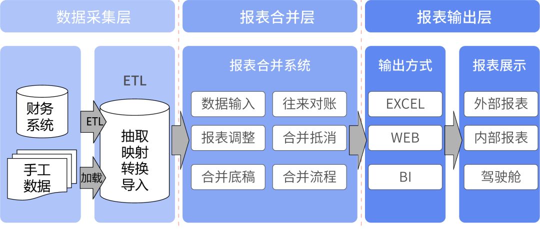 通过合并系统自动完成数据校验、对账、折算、抵消等合并工作;