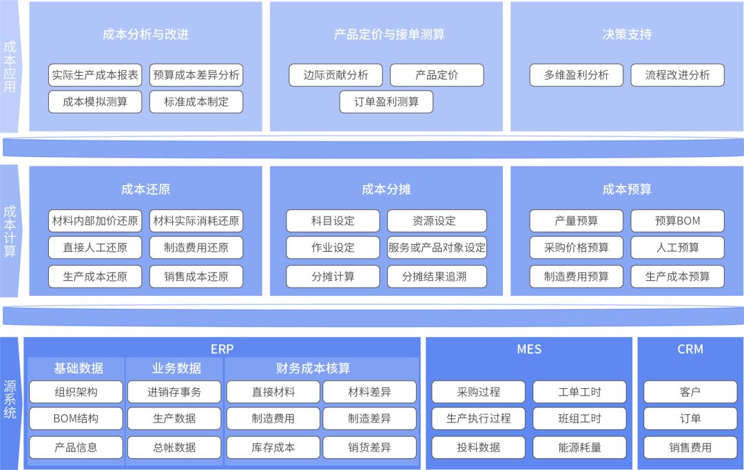 实现成本执行差异分析、产品定价及订单盈利测算。