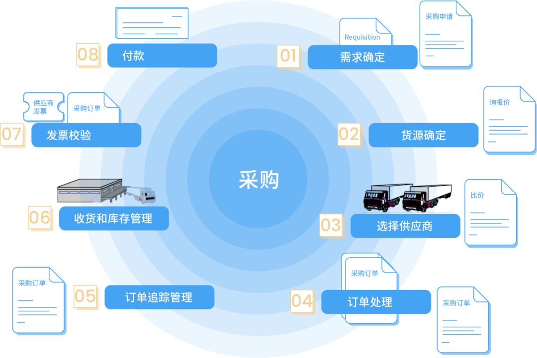 从采购需求、供应商管理到付款结算过程全周期管理,系统无缝覆盖全采购业务流程。