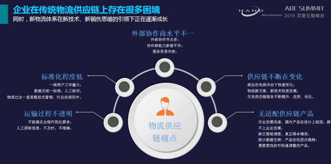 企业在传统物流供应链上存在的困境与复杂的物流行业特点是分不开的,企业运输过程不透明、面临的标准化程度不统一、外部协作商的水平参差不齐等问题,都使得企业物流供应链无法有效地提升作业效率、无法满足相应的管控需求。以至于经常有客户困惑为什么每发一车货,价值十几万,运费也不少,可是连最便宜的6块钱快递能提供的全程可视化体验都享受不到。