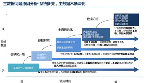 但随之而来的是,企业在数字化转型上也遇到越来越多有关数据利用的挑战:如不同的业务系统管理不同的业务数据,但核心数据缺乏企业的统一管理标准;企业只关注反映其经营情况的KPI,缺少对主数据质量的监控;企业受信息协同流程制约,数据管理流程分散,形成信息孤岛等等。