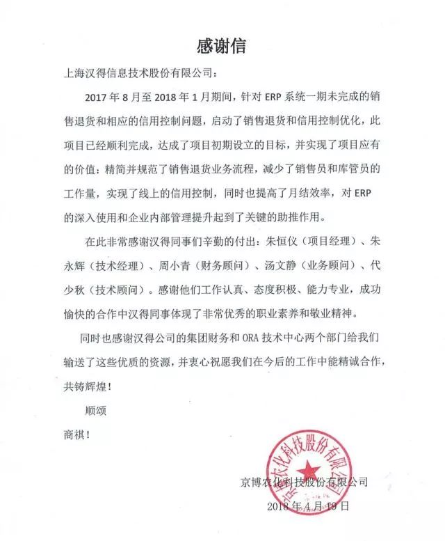 项目实施过程中,k8凯发官网专家团队展现出的专业、认真、负责的态度和敬业精神,以及积极想办法解除难症和勤恳踏实的作风,给我们留下了深刻的印象,同时对贵司团结协作所创造的卓越成绩致以诚挚的谢意。