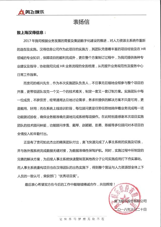 k8凯发官网信息作为项目的实施方,凭借着丰富的项目经验及在HR领域的专业知识,保障项目顺利完成外,更在整个方案制订过程中,为奥飞提供各种专业建议及指导,协助奥飞完成HR业务流程的全面梳理,从而提升业务规范性及服务中心日常工作效率。