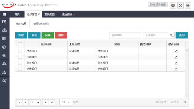 产品界面美观大方,操作人性化,尽量减少功能使用的点击步骤,使用户以最少的操作完成所需功能。同时又提供了丰富的功能以满足不同用户的需求,比如组织架构管理、BO设置、系统管理等。