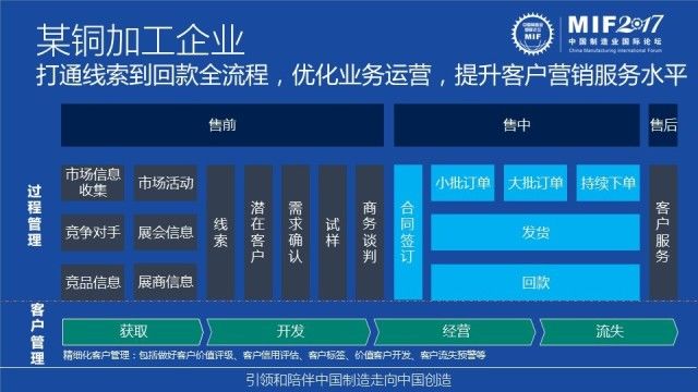 k8凯发官网微扬制造业CRM事业部总经理王东随后登台发表演讲,在数字化转型背景下,从服务转型的角度来看,目前多数企业服务归属于“成本中心”,由此将面临一系列的衡量标准、尺度等问题,下一步企业将逐渐向“利润中心”转型, 通过数据实现服务的标准化、流程化。此制造业解决方案,不仅打通了企业生产、服务、管理的各个环节,更对微信等社交软件进行了集成,提供更为本土化的数字化转型解决方案。