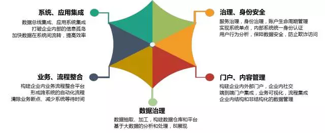 这时,需要通过应用系统之间的集成来实现共享共用——也就是我们经常说的融合。融合包括了在各个层次、方方面面的整合,比如从底层的数据开始,包含了业务、流程、安全、展现等各层次间的整合。随着企业内部应用系统的建设日趋完善,继续构建企业内部治理和管控类的系统和平台将成为企业内部信息化的主要诉求。