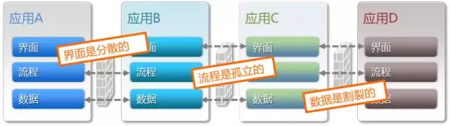 企业信息化发展的近几年,面对瞬息万变的市场和丰富繁杂的企业发展需求,信息化升级渐渐成为企业关注的焦点,但他们往往要面临的,却是企业信息化建设初期建立的一座座信息孤岛。当时,很多应用系统的构建都是烟囱式的垂直应用,这些应用间不论数据还是业务流程都相互独立,给信息化的再次升级带来了困难。
