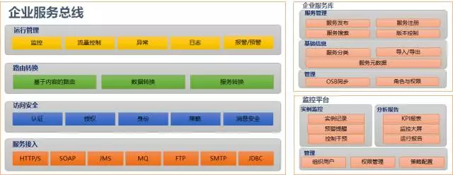 服务治理平台,接口服务进行全生命周期管理、预警、分析,支持各种主流的总线产品: