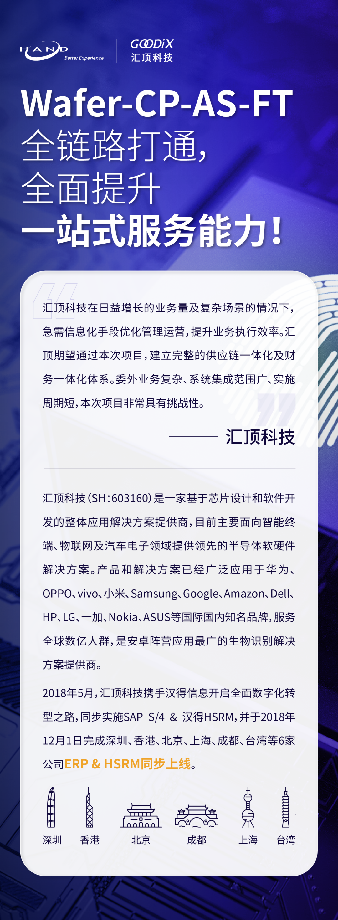 本期项目旨在夯实汇顶科技数字化转型基础,提高与供应商/外协厂的协同效率。