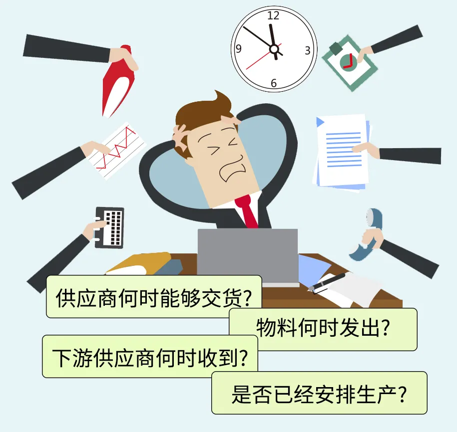 汇顶科技原有的作业模式,需要计划员不断通过电话、邮件等碎片化的方式追踪订单执行情况,比如供应商何时能够交货、物料何时发出、下游供应商何时收到、是否已经安排生产等等,所获取的信息也因各业务流程之间没有有效连通,使得数据无法产生更多的价值。