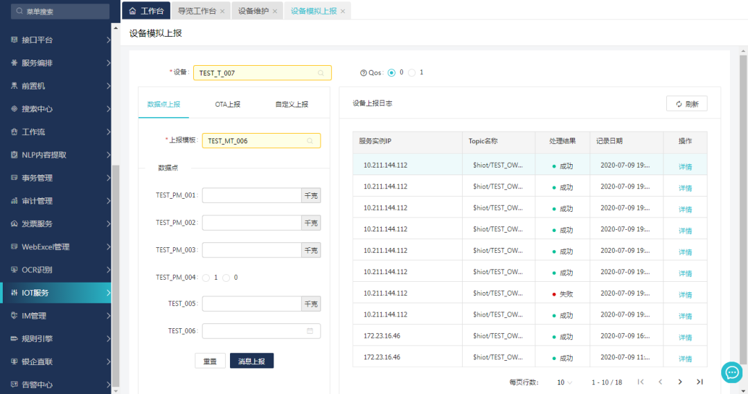 支持对接EDGINK设备,OTA升级任务管理,设备报文日志监控和设备模拟调试;