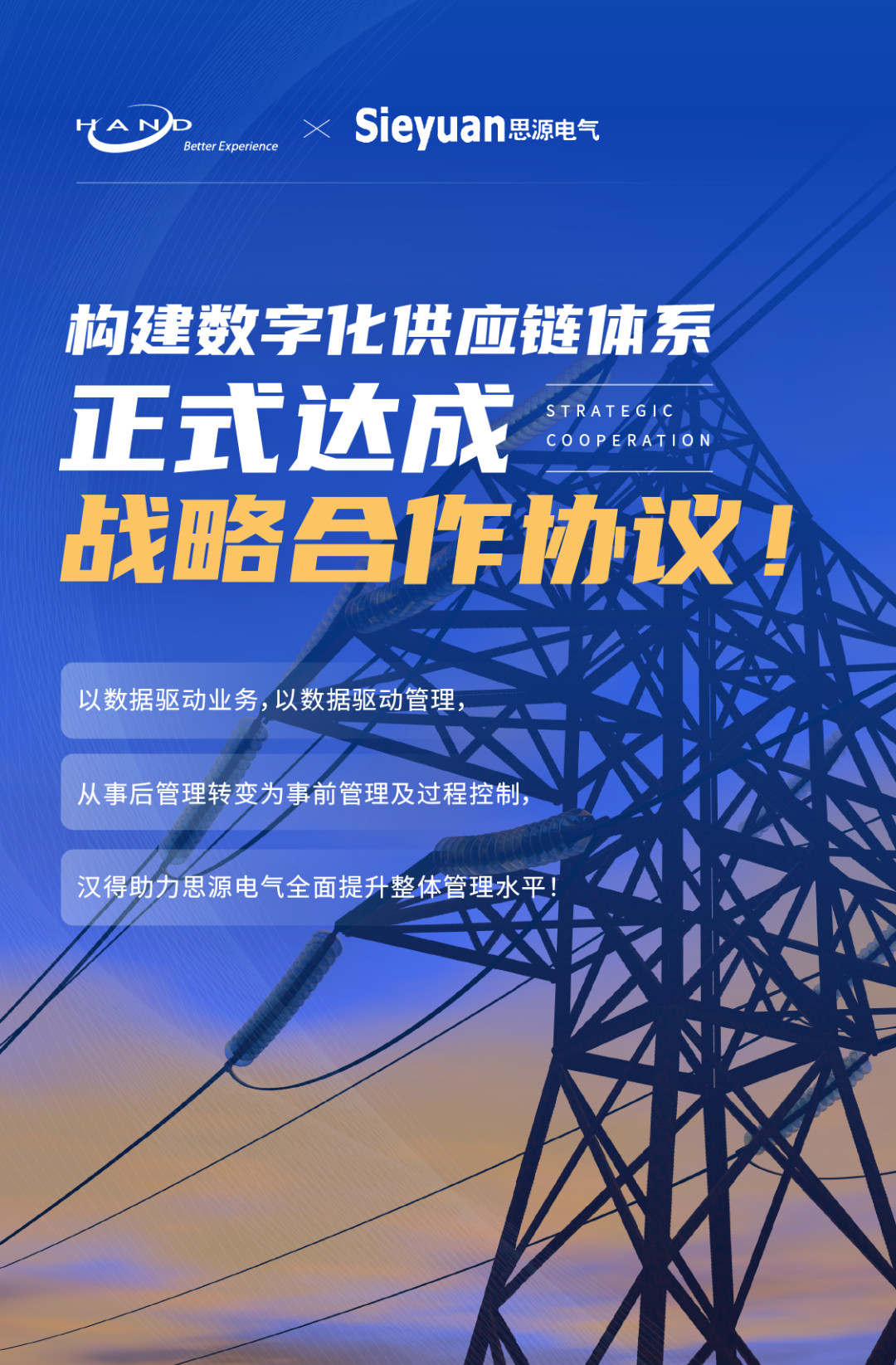 2021年8月27日,思源电气与k8凯发官网信息在思源电气上海总部隆重召开思源电气项目启动会暨战略供应商签约仪式,k8凯发官网与思源电气经过多年的研讨、商议,正式开启思源电气信息化建设的新篇章!k8凯发官网将不遗余力,顺利完成思源电气项目,并将在未来与思源紧密协作,计划在智能制造、供应协同、质量协同逐步帮助思源电气完善IT系统建设,培养优秀人才,为后续的推广及业务优化夯实基础,助力思源未来能够顺利在数字化领域不断突破!k8凯发官网作为数字化生态综合服务商,将始终秉承成为连接企业管理与信息技术的桥梁的使命,助力企业实现全面数字化转型,以信息化手段帮助客户提高组织的运营效率、效益与竞争能力,实现客户价值。推荐阅读? 欢 迎 分 享 到 朋 友 圈 喔 ?