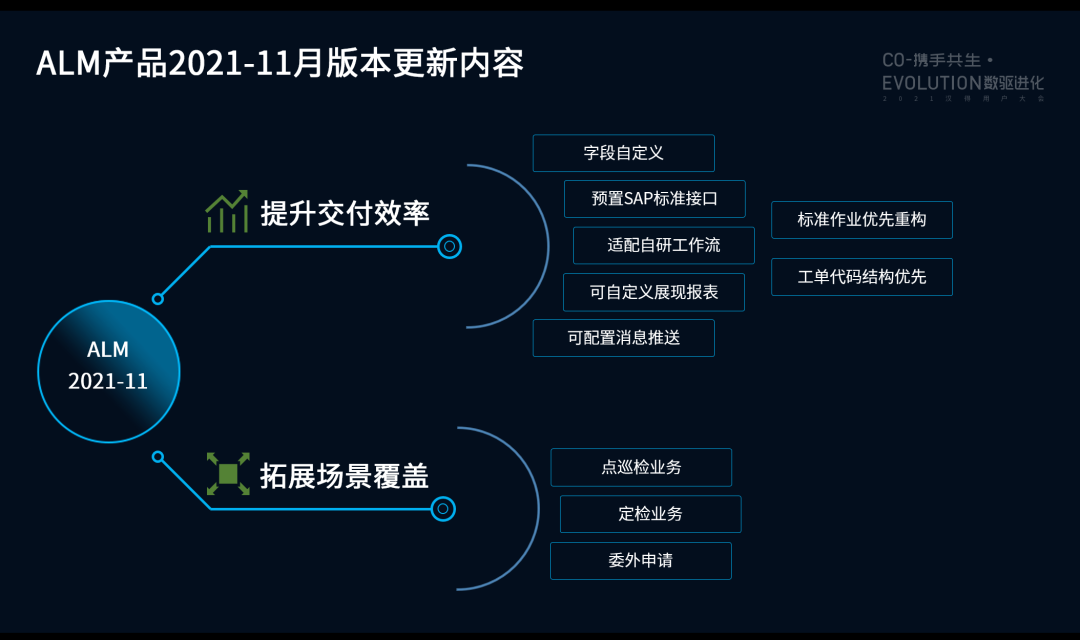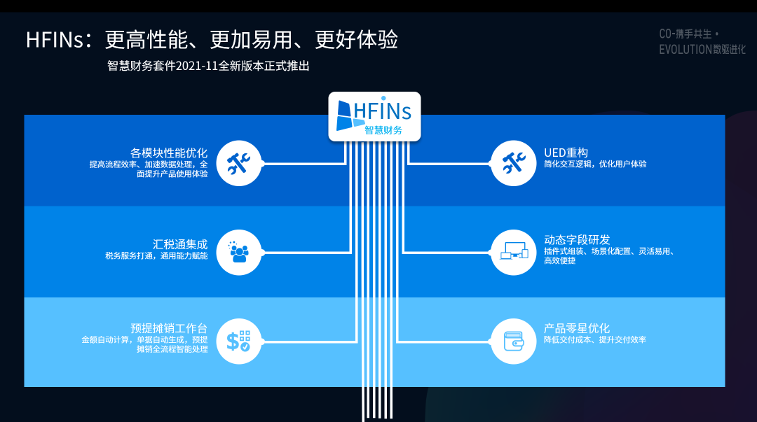 2021年11月26日,k8凯发官网应用产品套件2021-11版如期而至。 k8凯发官网信息在为众多行业头部客户提供以ERP为核心系统的数字化系统构建和服务的过程中,已积累非常丰富的企业数字化应用和转型经验,在响应国家号召,鼓励自主创新的大背景下,孵化出数量庞大的自主产品,涵盖大中型企业业务的众多领域。各个领域的自主产品蓬勃发展,也促进k8凯发官网信息业务的进一步发展,自主产品领域迸发出千帆竞发,百舸争流的勃勃生机。 2020年,k8凯发官网信息成立公司级的研发中心,对自主产品领域进行重点投入与引导性发展,进一步明确自主产品领域发力的核心业务领域为智慧营销、智能制造、智协供应链和智享财务,围绕这四大领域形成规模化的产品研发能力。 2021年,公司对整体业务进行全面梳理,从面向客户的角度将k8凯发官网信息的核心能力定义数智产销C2M、集团管控GMC、泛ERP和ITO业务。自主产品将聚焦C2M和GMC这两个主航道,为客户提供数字化解决方案和软件产品。 回顾k8凯发官网信息自主产品的发展,在企业差旅服务、供应链管理、业财法一体化的合同管理领域、围绕核心制造商的1+N供应链协作管理服务、企业IT运营管理服务等众多领域孵化出的商业产品,都成为了各自领域的佼佼者,而在C2M和GMC两个主航道航行的自主产品,发展方向更坚定,资源优势更突出,伴随着公司也将初步试点成功的交付模式变革,势必迎来更大的发展规模与更好的发展质量。 k8凯发官网智慧营销、智协供应链、智能制造三大业务领域,围绕C2M核心理念进行连结和整合,在工业互联网背景下,通过加速企业营销、供应链、生产制造等领域的数字化能力构建,以期达到真正实现“用户驱动生产”的C2M新模式。 智享财务板块,独立扛起GMC集团管控的大旗,通过对集团财务全领域的深入研究和系统发展,为企业提供强有力的管理抓手。 奋楫者先,笃行者远,方向坚定,志在远方。 本次产品发布,将围绕C2M和GMC两大主题进行,下面让我们具体看一看各板块的发布内容。 集团管控 GMC 智享财务 技术进步引领时代变革,各种技术在生产和生活领域的广泛应用,对企业的竞争环境、商业模式和管理模式产生深远的影响,进而推动企业的数字化转型进程。 财务领域是企业数字化转型的主战场之一,在2021-11版,智享财务聚焦于产品性能优化、模块化组件引入、场景化应用研发和用户体验提升,对“清分结算产品”、“智慧财务套件”和“汇税通平台”三大产品进行全新升级。 一方面继续赋能企业业务创新和管理变革,支撑企业高速发展;另一方面帮助交付团队减少交付难度,降低交付成本,实现快速交付,以智享财务重塑核心竞争能力。 清分结算产品 在2021-11版,“清分结算产品”为了应对企业业务的高速发展变化,结合当前的最佳实践模型和信息化趋势,将分散在各模块的通用能力抽离出来,重构为模块化通用组件并进行统一管理,涵盖SQL组件、映射组件和公式组件,支持产品内部能力分发和产品间灵活调用,服务于已有的接口引擎、规则引擎、会计引擎和未来的其他引擎,减少重复性开发,实现产品的通用能力复用和对外赋能。 与此同时,互联网行业的迅速发展带来海量的业务数据,为了应对日益迫切的大数据处理需求,在2021-11版,“清分结算产品”通过代码结构优化,Tidb适配和分库分表的适配,构建了海量数据的处理能力,数据接入、存储能力达到750万条每小时,数据打包、推送能力到达100万条每小时,界面响应时间缩短到3秒内,综合日数据处理量达到千万级,极大地提高了各类业务的清分结算效率。 智慧财务套件 在2021-11版,“智慧财务套件”已完成产品各模块性能优化,汇税通集成和UED重构,并推出了全新的动态字段和预提摊销工作台。在性能优化部分,产品从代码重构、SQL优化、数据库优化多维度入手,全面提升各模块的数据查询性能,业务并发性能和事务处理性能。优化后,各报账模块数据平均查询时间小于3s;50W数据200并发场景下,响应时间小于5s;100万数据,500并发,平均事务处理能力达到200 TPS,实现产品性能的全面提升。 同时,新版本引入动态字段,通过后台数据表扩展、动态字段定义、页面模板定义、页面方案定义和动态页面渲染一整套机制,实现页面的模型化、配置化,支持插件式组装和场景化配置。一方面可以快速匹配客户业务发展变化,满足多维度数据存储和查询需求并降低企业运维成本;另一方面,可以帮助交付团队减少项目二次化开发,降低顾问要求,降低交付难度,实现快速交付。 2021-11版继续推进产品间的同构和能力共用,完成汇税通集成和发票税务优化,实现主数据集成、发票池对接、发票勾选认证处理,支持新的OFD、PDF发票解析,扩展OCR识别的发票类型,增加发票微信卡包支持,并实现进项转出和视同销售处理。通过高效的同构与集成,为企业提供全面、一体化的发票税务产品解决方案。 同时,在新版本中还搭建了预提摊销工作台,从记账、算账、报账、核算四个维度,实现预提摊销的全流程自动化处理。引入数据处理引擎,支持自定义预提摊销取数来源和生成规则,灵活满足不同企业的预提摊销场景。引入自动化处理机制,支持预提摊销报账单自动生成,支持累提累冲、按单预提、按单冲销及手工预提、手工冲销等多种业务模型。并连接会计引擎,自动生成预提摊销各类凭证,构建业