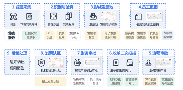 国家税务总局局长王军在第50届SGATAR(亚洲税务行政及研究组织)年会上发言指出,中国政府高度重视数字化发展,于2021年3月正式出台《关于进一步深化税收征管改革的意见》(以下简称《意见》),描绘了数字化背景下智慧税务建设的宏伟蓝图,提出建设“金税四期”的设想,开启了依托“金四”推进税收征管数字化之路。 在《意见》中明确了以“深化税收征管制度改革,着力建设以服务纳税人、缴费人为中心,以发票电子化改革为突破口,以税收大数据为驱动力的具有高集成功能、高安全性能、高应用效能的智慧税务”为指导思想。全面推进税收征管数字化升级和智能化改造,稳步实施发票电子化改革。 我国电子发票发展史 2013年 我国的电子发票试点在北京率先开展,2013年6月27日北京市国家税务局发布公告,决定在北京市开展电子发票应用试点,当日试点企业开具了第一张电子发票,我国的电子发票试点就此启动。 2015年 经过前期试点,国家税务总局宣布在全国范围内启用增值税发票系统升级版,并在此基础上,组织开发了增值税电子发票系统,用以开具增值税电子普通发票,并在全国范围内推行。 2019年 国家税务总局建设全国统一的电子发票公共服务平台,为纳税人提供电子发票开具等基本公共服务。 2020年 国家税务总局发布《国家税务总局关于增值税发票综合服务平台等事项的公告》,将增值税发票选择确认平台升级为增值税发票综合服务平台,同时明确了纳税人通过增值税电子发票公共服务平台开具的增值税电子普通发票为OFD格式。同年9月,宁波、石家庄和杭州三地先后开展新办纳税人专票电子化试点,并于2021年1月扩展到在全国范围内新设立登记的纳税人。 2021年 11月30日,上海市、广东省、内蒙古自治区三地税务局分别发布了《关于开展全面数字化的电子发票试点工作的公告》(下文简称《公告》),决定自2021年12月1日起在该三地部分地区的部分纳税人中开展全电发票试点工作,通过全国统一的电子发票服务平台24小时在线免费为纳税人提供全电发票的开具、交付、查验等服务,试点范围包括存量企业,我国电子发票试点进入“全面数字化”和“一票式”集成阶段。 全电发票是落实税收征管数字化升级和智能化改造的重要抓手。使用全电发票能进一步强化发票记录交易信息的本质,实现经济交易信息“一票式”集成,有利于降低征纳成本。 01 什么是全电发票 全电发票的法律效力、基本用途与现有纸质发票相同。其中,带有“增值税专用发票”字样的全电发票,其法律效力、基本用途与现有增值税专用发票相同;带有“普通发票”字样的全电发票,其法律效力、基本用途与现有普通发票相同。 广东省全电发票由国家税务总局广东省税务局监制。全电发票无联次,基本内容包括:动态二维码、发票号码、开票日期、购买方信息、销售方信息、项目名称、规格型号、单位、数量、单价、金额、税率/征收率、税额、合计、价税合计(大写、小写)、备注、开票人。 全电发票的发票号码为20位,其中:第1-2位代表公历年度后两位,第3-4位代表广东省行政区划代码,第5位代表全电发票开具渠道等信息,第6-20位代表顺序编码。 全电发票样式 注:以国家税务总局广东省税务局公告 2021年第3号《公告》为例 02 全电发票的优势 开业开票“无缝衔接” “去介质” 纳税人不再需要预先领取专用税控设备 “赋码制” 取消特定发票号段申领,系统自动分配 “授信制” 自动为纳税人赋予开具金额总额度 发票开具更便捷 发票开具渠道更多元 全国统一电子发票服务平台 “去版式” 满足个性业务需求 发票数据应用更广泛 “一户式”“一人式”发票数据归集 加强各税费数据联动 “一表集成”式税费申报预填服务奠定数据基础 入账归档一体化 电子发票国家标准逐步完善 推进企业财会管理信息化建设 发布电子发票数据规范和接口标准 提升高信息化水平企业 进一步实现发票报销、入账、归档一体化操作 03 企业所面临的挑战 挑战一:试点纳税人可以通过电子发票服务平台税务数字账户自动交付全电发票,也可以通过电子邮件、二维码等方式自行交付全电发票(《公告》第七条、第八条)。上海市、广东省、呼和浩特市部分企业作为受票方将开始收到全电发票,报销人应如何使用全电发票进行报账? 员工收到全电发票后,可使用票智汇小程序通过二维码扫描、拍照、邮件导入等多种方式采集全电发票。采集完成,系统自动进行查重、验真、合规检查,检查通过归集至个人票夹,用户可在费控或ERP系统中选择已采集的发票进行报账。 未来电子发票服务平台接口开放后,票智汇可提供更多自动化的发票采集、查验、用途勾选、发票认证方案。 微信发票导入图示 挑战二:税务机关对试点纳税人开票实行开具金额总额度管理,试点纳税人可通过电子发票服务平台标记发票入账标识(《公告》第六条、第十条)。在信息管税的背景下,企业如何解决电子发票重复报销入账,进项发票、业务单据、记账凭证对应错误的问题? 以开票额度来管控企业发票开具为全新的理念,且更为科学。既达到管控开票额度,防止虚开,又解决原先由于发票版面额度以及核定张数的限制导致发票量不够,无法及时开出发票的问题。同时,取消版面额度限制后,进项税发票可以与采购记账凭证一一对应,解