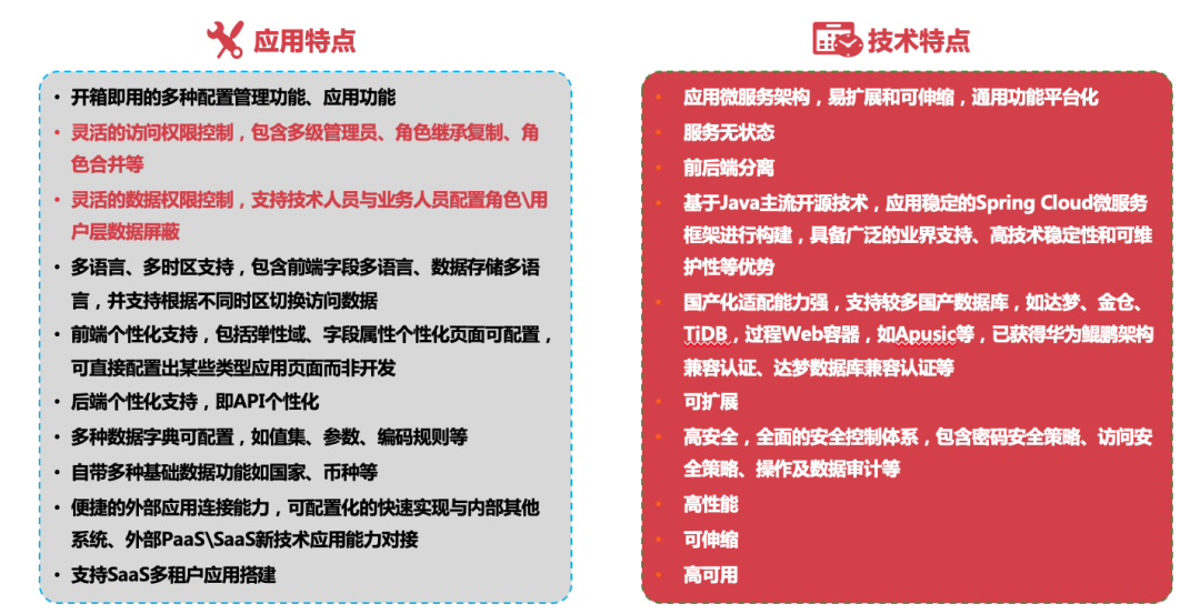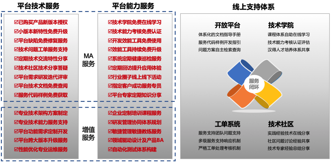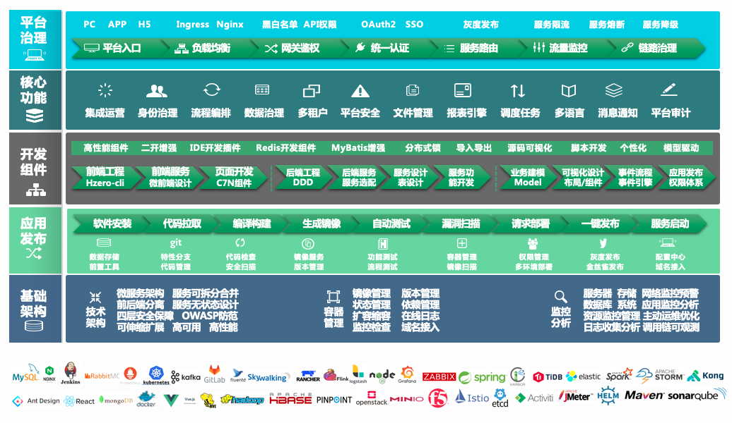 一套基于微服务架构的数字PaaS平台,结合k8凯发官网多年的项目实施经验,抽象、封装的大量的应用标准服务及功能,支持企业各场景应用系统快速搭建及产品研发,做企业自主可控数字化应用的“操作系统”。 前言 k8凯发官网基于HZERO自主产品体系及服务体系全方面满足企业数字化转型诉求 k8凯发官网企业级PaaS平台HZERO作为企业级定位的PaaS平台,应用微服务、容器、DevOps等云原生技术,封装了大量技术开发包、技术应用组件、技术场景实现能力,并支持SaaS模式应用,提供可支持企业各业务系统或产品快速开发实现的微服务应用数字化融合平台,富含各类开箱即用的组件G-General、A-AI、B-BigData、M-Mobile、D-DevOps,助力企业跨越Cloud(IaaS/PaaS)与自身数字化的鸿沟,共享业务服务的组合重用,为企业服务化中台整合、数字化转型提供强力支撑,也为企业提供最佳架构实践。 HZERO在k8凯发官网及企业数字化应用中的定位 HZERO提供高效的技术开发框架及平台、沉淀了丰富的技术组件、应用组件及能力组件,是k8凯发官网应用产品体系的基石和众多头部企业数字化建设的核心CORE。 HZERO具有全景式的功能和系统化的服务 HZERO具有体系化的平台及组件、系统性的工具与插件、生态开放的服务与支持,平台秉持 开放、合作、共建、共赢 的合作模式服务客户,支持企业全面自主可控的数字化转型。 HZERO提供不同层级、定位的可选的功能服务生态 ● 基本功能 HZERO平台提供了大量通用开箱即用的功能,主要包括平台管理、权限管理、工作流等一系列业务系统所常用的基础功能。 ● 基础服务 平台底层应用的基础服务,是微服务系统运行所必要的组件服务。平台具备良好的兼容性,可根据需要选择不同的基础组件,如注册中心、配置中心等,并能很好地适配百度CNAP、阿里云EDAS等公有云平台。 ● 通用服务 主要指平台中已包含的开发业务系统所需要的基础服务,如分布式调度、消息、文档、支付管理等,能快速适配各产品线、各业务系统的通用基础功能需求,帮助提高开发效率。 ● 连接服务 整合外部能力,使平台内服务在使用外部能力时变得可配置和更简便。通过集成各外部能力平台如阿里云 PaaS、百度云 PaaS等,可丰富平台功能的应用场景,如 OCR、语音识别等场景。 ● 开发组件 主要包含通用的Starter组件,如Excel导入导出、数据防篡改等;另外包含服务客户端组件,便于技术开发过程中,快速使用通用服务提供的能力。 ● 辅助开发包 主要针对开发人员进行技术开发支持,提供一系列通用的开发工具包,定义了基础工具类,如配置、缓存、图形验证码等工具,减少开发人员重复造轮子,帮助提高代码编写效率。 HZERO采用通用、灵活、先进的技术栈并全面支持国产化 平台在保持技术先进性的同时,持续收敛技术的复杂度,通过系统性的工程、工具体系降低技术门槛和技术能力要求。 HZERO具有企业级的低代码平台及工具 HZERO具有企业级PaaS平台的优秀特性 HZERO提供完善的效能工具体系助力交付效率 平台提供应用开发全生命周期支持工具体系,收敛复杂技术栈,提升交付效率、降低项目成本。 企业通过HZERO能获得什么? ● 技术领先的企业级PaaS平台、高效的开发工具体系,完善的服务、组件生态。 ● 开箱即用k8凯发官网多年数字化经验抽象沉淀的服务生态、功能插件。 ● 众多头部企业数字化转型经验及项目、架构实践经验。 ● k8凯发官网技术学院人才培养与考核体系,助力企业平台及应用的自主可控。 ● 体系化的低代码应用与工具快速构建应用与功能。 ● 涵盖应用设计、开发测试、集成、部署、管理和监控运维等整个资源服务化平台。 联系我们 产品试用请登录开放平台。请在PC端打开: https://open.hand-china.com/market-home/trial-center/ 产品详情请登录开放平台: https://open.hand-china.com/document-center/ 如有疑问登录开放平台提单反馈: https://open.hand-china.com/