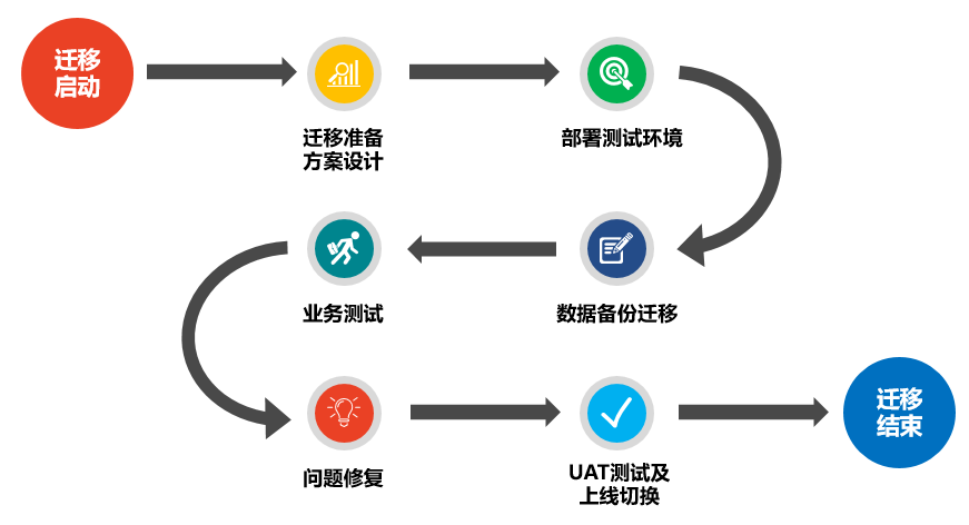 依据迁移方案进一步制定整体及细节迁移计划,包括数据整理、测试环境部署、数据备份、数据迁移、应用测试及应用调整等,严格执行迁移计划,完成整体迁移及验证工作,提供贯彻始终的服务支持。
