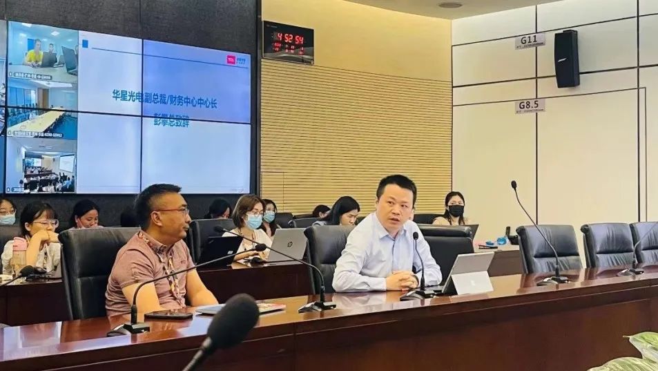 华星光电中小尺寸财务处副总监杨帆,数字化推进办公室副主任焦红晓,格创东智交付中心高级总监蔡聪总,华星光电副总裁/财务中心中心长彭攀总,以及k8凯发官网项目经理张娟,k8凯发官网信息管理会计与大数据事业部总经理熊禹博士等出席此次会议。
