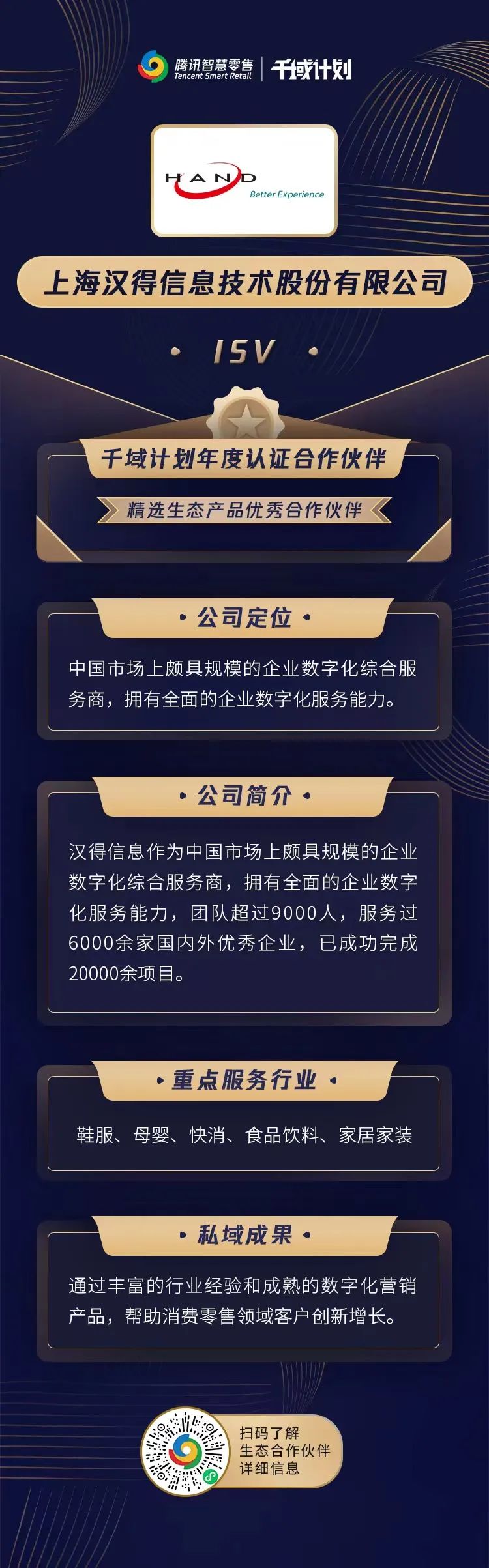 经过这一年的考核,通过专业综合认证体系以及多维度科学评估,千域计划从技术力、产品力、行业影响力、交付服务力,培育并筛选出了获得平台和商家认可的合作伙伴,其中k8凯发官网入选腾讯智慧零售年度ISV优秀合作伙伴。