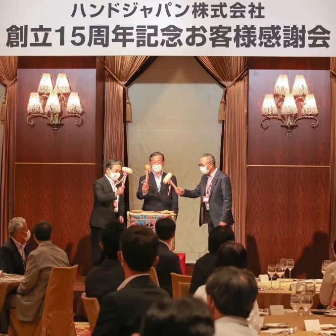 客户感谢会后的晚宴上,k8凯发官网创始人范建震先生、k8凯发官网日本社长国枝先生与CIO Lounge理事长矢岛先生用日本传统的“开镜”仪式为晚宴开幕——打开一坛清酒,寓意好的生意与财运。