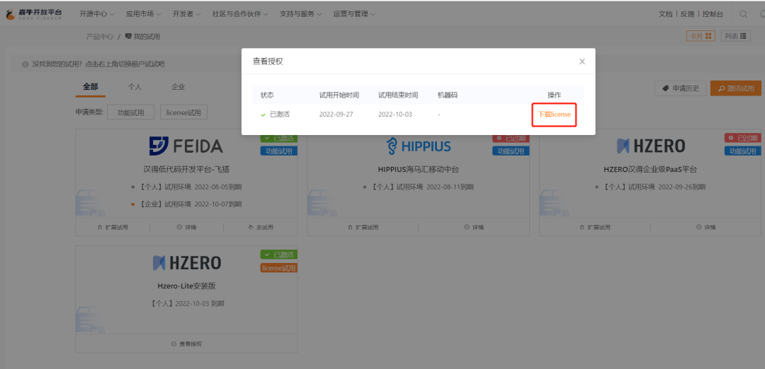Lite版精彩内容抢先看 系统管理:灵活的访问权限控制,包含多级管理员、角色继承复制、角色合并等 数据权限:灵活的数据权限控制,支持技术人员与业务人员配置角色/用户层数据屏蔽 开发管理:多语言、多时区支持,包含前端字段多语言、数据存储多语言,并支持根据不同时区切换访问数据;前端个性化支持,包括弹性域、字段属性个性化页面可配置,可直接配置出某些类型应用页面而非开发 消息管理:支持短信、邮箱、站内消息、企业微信等消息发送,并能够灵活管理消息模板和对接云平台支持的微服务 文件管理:为HZERO系统提供简单易用的文件存储功能,具备对接多种云对象存储服务的能力且易于拓展,同时支持服务器Ftp协议文件上传,支持大文件断点续传、文件预览、Word在线编辑、Pdf水印等 调度平台:支持执行器管理、调度任务管理、日志管理以及并发请求等 报表平台:通过配置数据集,执行SQL或者查询URL,获取数据以渲染平面报表、单据报表、图形报表的服务 通用导入:支持Excel、Csv数据导入。支持自定义渲染Excel模板,自定义数据校验,自定义数据导入 接口平台:便捷的外部应用链接能力,可配置化的快速实现与内部其他系统、外部PaaS/SaaS新技术应用能力对接 HZERO Lite安装流程 HZERO基于Java主流开源技术,应用稳定的Spring Cloud微服务框架进行构建,具备广泛的业界支持,高技术稳定性和可维护性等优势。 安装注意事项 注意安装目录不能包含中文字符。 安装时默认占用端口为 3306、6379、9000、80、38080、38081。 安装需要使用到管理员权限。 下载安装包 可通过焱牛开放平台Hzero-Lite版下载安装包 一键安装 1. 下载Exe安装包后,鼠标右键点击,选择以管理员身份运行。 2. 点击浏览,选择安装目录,点击确认。 3. 程序解压完成后,弹出安装引导窗口。 4. 协议阶段。点击下一步,同意试用服务协议。 5. 准备阶段。点击下一步,程序会自动检测本机端口是否可用。 6. 授权阶段。输入Lic授权码,授权码获取详见【License免费试用申请】,点击校验进入下一步。 7. 安装窗口。点击安装,开始安装,等待进入100%,关闭窗口即可。 安装完成后,会自动进入默认访问地址:Http://trial-poc.hzero.org 服务管理 打开安装目录,点击Hzero-manager.exe程序,右键使用管理员权限运行。 服务状态刷新 在管理界面右上角,点击刷新按钮 重启服务 停止: 在管理界面,点击对应服务的停止按钮。 启动: 在管理界面,点击对应服务的启动按钮。 授权更新 1. License过期后如需继续体验,按照下述申请流程重新申请,并下载License文件。 2. 在管理界面右上角,点击更新License按键,将重新下载的Lic内容粘贴到文本框,并点击更新,确认重启。 一键卸载 在管理界面右上角,点击卸载按钮,可一键卸载。 License免费试用申请 提交License免费试用申请 通过焱牛开放平台Hzero-Lite版申请产品试用,选择Hzero-Lite版试用License申请。License默认使用时长7天,提交后,等待管理员进行审批。 下载Lic文件 审批通过后,在应用市场>体验专区>我的试用下载Lic文件,并将文件内容粘贴到授权窗口。 企业数字平台建设核心CORE HZERO企业PaaS级平台具有高效的技术开发框架及平台、沉淀丰富的技术组件、应用组件及能力组件,是k8凯发官网应用产品体系的基石,及众多头部企业数字平台建设的核心CORE 企业数字化应用的“操作系统” HZERO企业PaaS级平台提供不同层级、定位的可选功能服务生态支撑业务发展 全行业数字化服务组件生态 企业级PaaS平台HZERO源自k8凯发官网20年、20000多项目沉淀,服务组件生态全行业数字化经验抽象沉淀 企业级特性,全行业覆盖