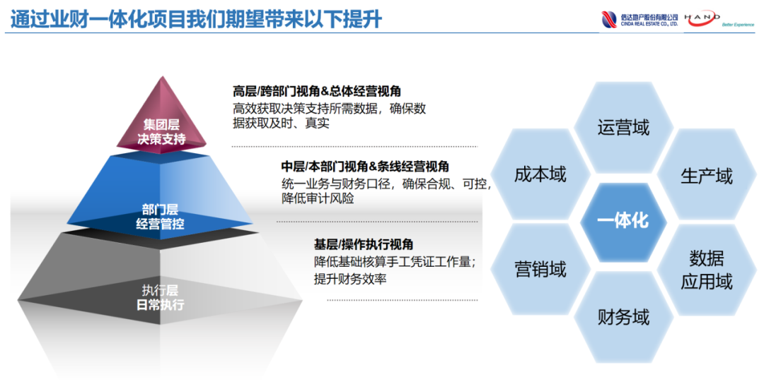 以业财一体为基础,项目运营为主线,推动各专业有效交圈,逐步实现流程、数据的标准化、集成和优化;