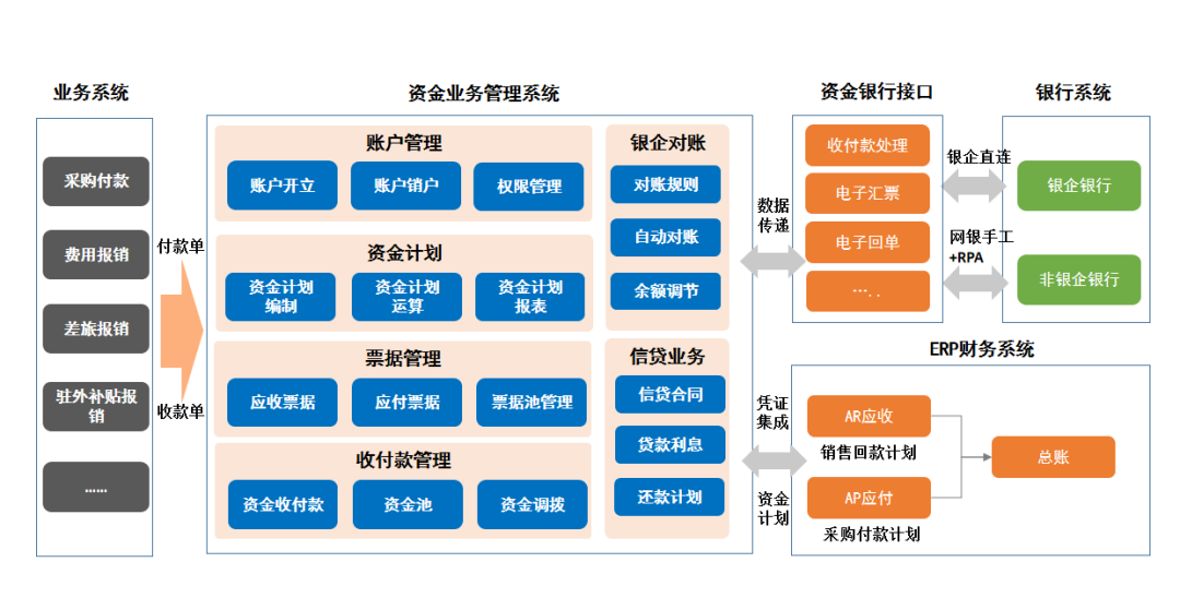 2、银企直连,通过资金系统+RPA打通企业所有银行的通道。电汇业务实现自动支付、回单自动获取;票据业务实现票据开立、背书、签收等操作。不再打印电汇、票据回单,自动获取回单送入电子档案库。