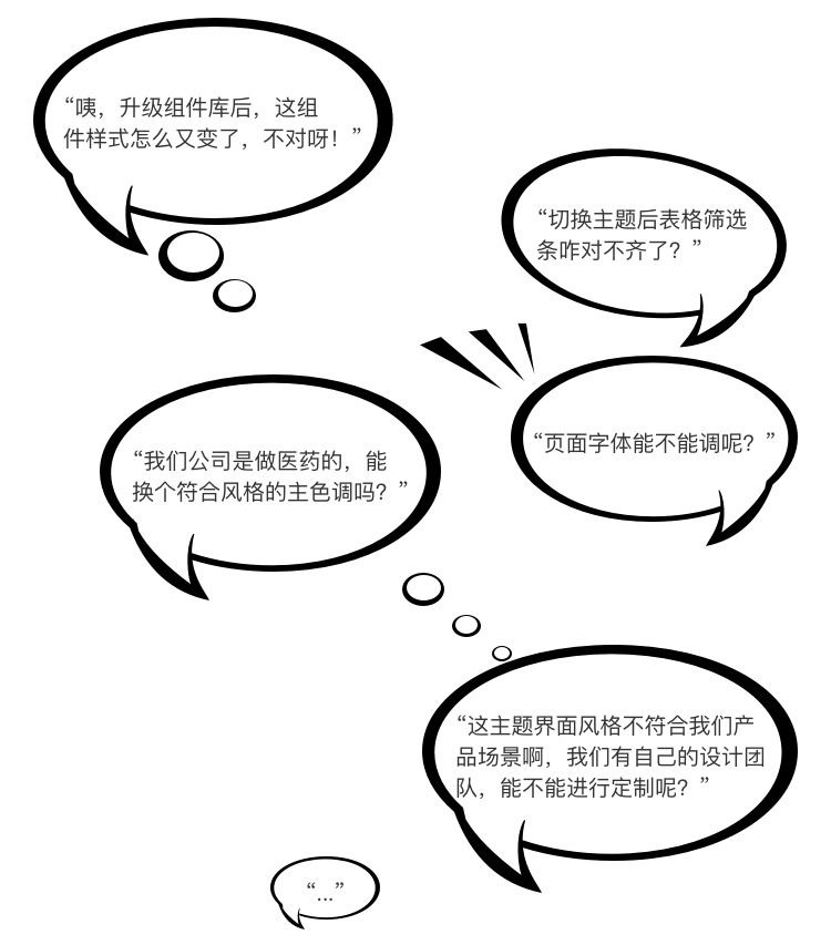 项目开发中经常听到客户、产品、技术提出各种各样的问题或需求。 现在,UED 5.x CSS 变量方案全新推出,解决历史问题,帮助大家更稳定、更灵活的处理相关需求,快来进一步了解吧! 为什么升级 UED 5.x 解决历史样式不稳定问题 UED 项目存在 2.x 、 3.x 、4.x 多个历史版本,都存在一个重要问题 ——不稳定 5.x 针对以下痛点做了优化: 样式覆盖优先级混乱 历史问题: 升级组件库后样式错乱、难排查,每次升级组件库版本都得同步升级 UED 包,版本需对应,十分麻烦 处理方案: 新版针对主题实现方案重构,去除大量模板覆盖,解决优先级、类名混乱的问题,版本关系不强耦合 样式设计还原不完善 历史问题: 历史主题还原采用样式覆盖方案,代码结构不稳定;当组件库新增特性、优化样式时,可能导致主题样式错乱 处理方案: 新版采用设置 CSS 变量方案,基于组件库本身样式结构,样式稳定,更加完善合理 样式变量混乱 历史问题: 历史版本变量设计不系统,使用混乱,无法直接开放给开发者读取、使用 变量不开放,项目内样式覆盖无法适配所有主题,切换主题存在样式冲突 处理方案: 新版 CSS 变量基于组件库 LESS 变量转换,变量规范、系统、使用可追溯 部分组件属性失效 历史问题: 历史版本设计还原不充分,未考虑组件属性优先级,导致属性失效,影响功能使用 例如:输入框 border 属性,历史版本下属性无效,无法控制输入框边框显隐,新版则正常生效 处理方案: 新版针对设计缺失做了样式补充,保证组件功能属性正确的前提下进行还原,灵活实现设计 更灵活动态的样式支持 开放大量样式变量 基于 HUED 设计规范,组件库内开放出大量样式变量,提高自定义样式可拓展性,同时为项目定制化样式提供更多更完善的变量控制 支持修改字体变量 组件库对字体样式做了统一规范,组件字体均可通过字体变量配置修改,无需多重样式覆盖,一步生效 支持样式跟随主题 新版支持引入组件库变量,切换主题,自定义样式变量可随着主题更改而变化,实现样式适配主题 自定义组件样式示例: 支持项目扩展主题 新版支持项目初始化时主题变量配置,可对内置主题进行扩展。修改主题主色、风格的需求可轻松实现! 便捷自定义新主题 产品有单独的设计团队,并且想拥有一套更符合项目场景的主题,新版支持便捷实现! 根据设计团队产出的规范化设计稿,开发者可参考主题变量文档,基于完善的变量配置即可快速扩展一个全新主题 如何升级 支持环境 现代浏览器和 IE11 及以上(需要 polyfills) HZERO版本 >= 1.8.x Edge Firefox Chrome Safari(macOS) IE >=91 >=78 >=90 >=14 11 新版使用 CSS 变量方案,对 IE 的支持需要相应 Polyfill 配置,如需支持 IE 建议使用 UED 4.0.x 版本 版本要求 choerodon-ui: 1.5.8-css.0 (CSS 变量版本) hzero-front-ui(UED): >= 5.1.0 hzero-ui: >= 1.0.86 升级指南:https://open.hand-china.com/document-center/doc/component/3913/17890?doc_id=340133&doc_code=197775 常见问题:https://open.hand-china.com/document-center/doc/component/3913/17890?doc_id=340147&doc_code=197789 注意事项 升级新版后,使用到组件库 LESS 变量的地方需要特别注意: 颜色变量:由于组件库的 LESS 变量指向了 CSS 变量,所以不能再对其执行 LESS 方法,可用现有的其他变量替代,如有需求,可提工单或者提交 PR 新增变量 数值变量:对数值类变量引用并且计算,需要使用 CSS calc 方法进行包裹 「相关文档」 https://open.hand-china.com/document-center/doc/component/3913/17890?doc_id=340145&doc_code=197787 https://github.com/LiarYe/choerodon-ui/blob/feature-css-vars/components/style/themes/css-vars.less https://open.hand-china.com/document-center/doc/component/3913/17890?doc_id=340139&doc_code=197781 https://open.hand-china.com/document-center/doc/component/3913/17890?doc_id=340140&doc_code=197782 变量使用指南: https://open.hand-china.com/document-center/doc/component/3913/17890?doc_id=340136&doc_code=197778 后续计划 提供完善的文档和教学视频,并组织新特性的专题赋能,敬请期待! 运维支持 如若在使用过程中有任何技术上的问题 请前往开放平台(https://open.hand-china.com/),选择前端组件库/C7N-UI 分类提反馈联系我们!