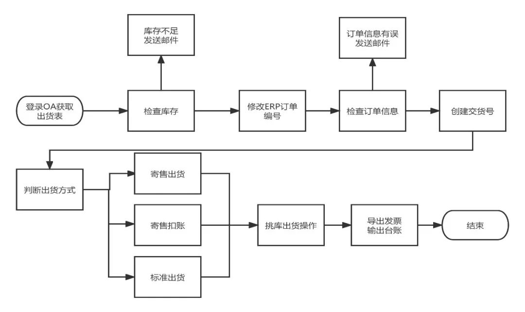 RPA自动完成ERP系统内挑库出货所涉及信息的稽核及系统操作,发现异常信息及时通知用户跟进。