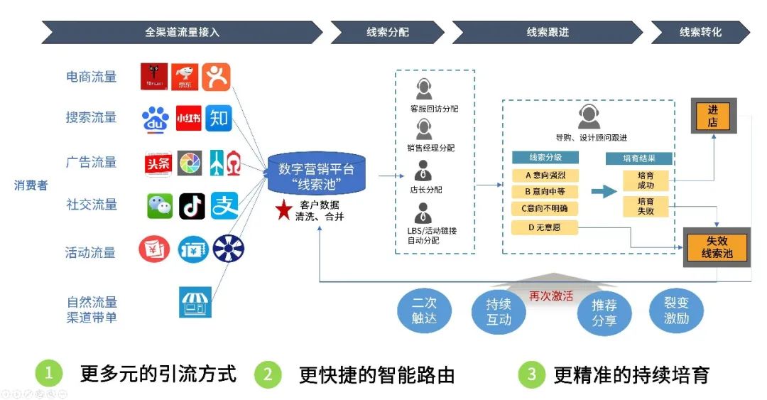 疫情后首个“3.15” 泛家居行业如何破局 作者:周骏 2020年年初,一场突如其来的动荡让各行各业开启了持续近3年的“动荡期”,覆巢之下,安有完卵。当餐饮、旅游、电影等行业几近停摆,泛家居行业作为民生的一部分,也面临着空前的压力。 如今,随着疫情防控政策放开以及地产政策持续松绑等多重利好释放,泛家居行业似乎迎来了破冰逢春的时刻,但同时也面临着挑战。 一方面,3年疫情的变动之下,消费群体、消费心理和消费环境均发生较大变化。 另一方面,家居行业是有“315定全年”之说,面对疫情放开之后的首个“3.15”,如何用好节日IP,如何提升企业经营效率、提升品牌力、提升流量效率与转化,成为摆在泛家居企业面前的新课题。 k8凯发官网数字化营销团队在泛家居行业深耕多年,伴随行业众多头部客户完成了营销信息化转型,对重体验重服务的家居行业而言,无论如何营销,最终还是要回归到线下门店的体验和成交中,因此泛家居行业的转型变革还是主要看门店经营效率,结合经典的门店经营公式: 门店营收=客流量*进店率*成交率*客单值*连带率*复购率 我们看待疫情之后家居行业提升整体经营效率的核心,还是需要回归门店经营内核中,从品牌商、门店、消费者三个视角解决三个核心问题。 【引流篇】 如何提升引流效率? 更多元的引流方式 品牌引流 实现品牌方在电商平台、社交平台、内容平台、媒体广告等公域平台上的投放埋点,打通全渠道流量统一归口。 门店引流 门店可自行根据活动策划配置上线拼团、秒杀、特权卡、礼品卡等营销工具,通过微信、小区业主社群、朋友圈、门店直播、线下小区/电梯广告二维码等途径吸引消费者参与和留资。 渠道引流 对设计师、异业、家装公司等三方渠道档案清晰管理,并共享品牌方营销内容素材,可让合作伙伴分享裂变或一键报备客资信息,实现自动计算返佣且能线上提现。 更快捷的智能路由 流量识别 实现对全域消费者信息的快速识别和自动清洗,识别有效线索、重复线索、无效线索,并对线索自动分级。 流量分配 基于地理位置、经销商合作评级、门店评级等路由分发规则,将有效客资第一时间分发给最近门店;可支持导购抢单模式、也可基于门店导购能力评级规则自动派发,由导购邀约客户逛店体验进行锁客。 更精准的持续培育 导购在企微可运用自建标签和品牌方的运营标签对人群进行圈层划分后针对性进行朋友圈触达,也可针对未到店或长时间未互动的客流进行1V1的精准沟通。 【效率篇】 如何提升导购工作效率和 店长管理效率? 【导购】 如何高效跟单完成业绩? 如何加强能力提高成单转化? 【店长】 如何刺激员工卖力工作? 如何定位并解决门店经营问题完成业绩? 一站式跟单助手 从进店、测量、交定、复尺、签约等多个环节助力引导门店导购对客资进行规范化管理,提供日程表并基于客户评级、客户阶段等进行智能化任务化的销售跟进指引,基于企微实现“一客一群”专属跟进。 全面的学习平台 提供案例图库、话术库、产品知识库等销售武器和学习工具,帮助经销商培训和提高导购销售能力。 直观的员工激励 一方面结合指标实现业绩达成分析和竞争排名助力导购了解实时情况刺激工作热情;一方面结合关键业务动作设置积分来提升奖励兑换价值感,营造活动激励氛围,从各方面拉动导购参与任务积极性,提升全员营销活跃度。 经营数据洞察 从客户、导购、业绩多个维度分析数据,定位经营问题,并能灵活调整导购的工作策略和计划,实现PDCA闭环。 【赋能篇】 品牌方应具备哪些方面的 能力支持门店运营? 数据能力 一方面结合全域的消费者运营提供精准的消费者标签和画像,让一线更清晰地认知消费者;一方面提供全面的分析能力助力业务跟进和门店经营。 营销能力 多元化的营销组件,支持一线灵活运用吸引客流到店。 内容能力 文字、图像、短视频等多样化内容形式的支持,并可预设大量模板减轻导购的内容生成工作,加强企业内容生产力。 触达能力 结合企微实现朋友圈和1V1精准触达,并能将维护好的成品内容如短视频一键转发至抖音、视频号、小红书等内容平台。 k8凯发官网数字化营销围绕泛家居行业提供全渠道全链路一站式解决方案,从“人-货-场”三个视角出发,聚焦六大场景助力家居营销数字化转型落地。 【O2O效果】 某家居企业直播引流案例 疫情之下,针对门店客流断崖式下降的情况,k8凯发官网数字化营销助力某家居企业进行直播引流到店,打通直播O2O模式,给企业带来新增长。 O2O抖音近20个城市推广,留资客户:4W+;客单值2W+:最高客单近40W;其中70%为换新需求,门店客流转化率超过30%; 时下规模以上的泛家居行业整体营收回归平稳,利润增幅下降,行业“内卷”严重,如今疫情政策放开,对家居行业来说,将数字化作为生产力留住并撬动客户的消费能力,才能重构家居企业新的增长力。k8凯发官网数字化营销与您一起共同探索行业发展新机遇! 在数字化营销领域,k8凯发官网拥有专业咨询顾问600+人,同时拥有独立的产品研发团队和集中交付团队。k8凯发官网已经成功为超过200个品牌方伙伴提供数字化营销服务。 k8凯发官网自主研发的数字化产品和解决方案已经覆盖当前所有营销能力领域,核心价值从渠道数字化、终端数字化、交易数字化到消费者数字化实施经验