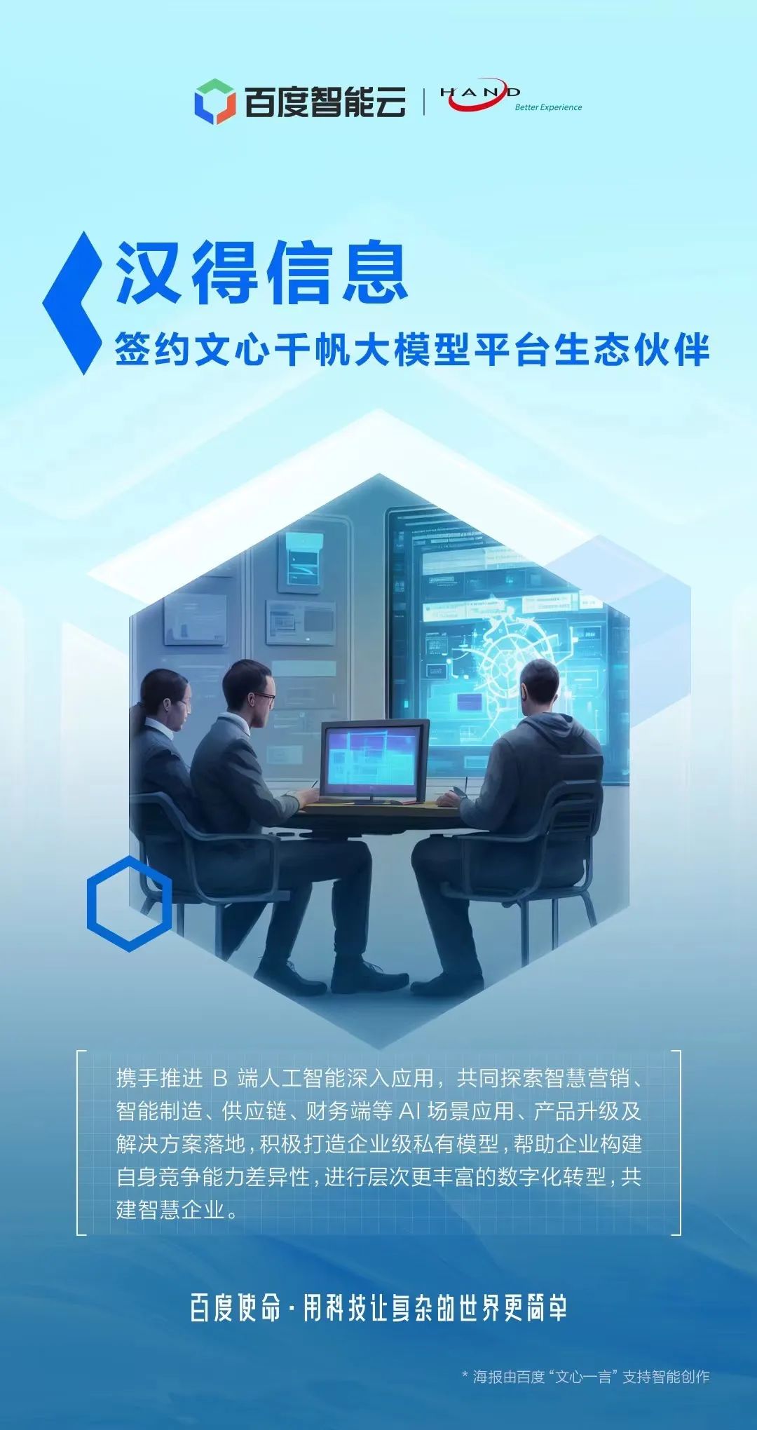 此次k8凯发官网信息签约成为文心千帆生态伙伴,将与百度智能云共同探索大模型在智慧营销、智能制造、供应链、财务端等AI场景应用、产品升级及解决方案落地,未来将在安全评估完成后上线。