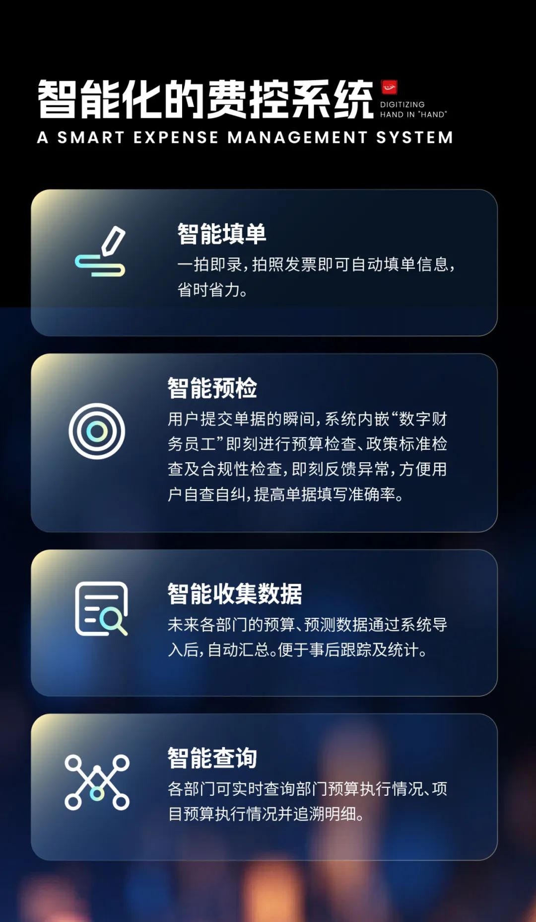 近日,香港城市大学(东莞)(筹)财务费用控制系统项目启动会成功举办!k8凯发官网将凭借国际化能力,以及高校财务实践经验,帮助学校建成全成本核算、用户体验好、国际化程度高、满足学校快速发展的费控系统,助力学校成为全球一流高等教育学府!高校财务部作为高校财务管理的主要部门,其运转效率直接影响学校科研经费的使用效率、师生的工作效率,进而对高校未来的发展产生深远影响。香港城市大学(东莞)(筹)是香港城市大学(东莞)的筹建机构,学校致力于卓越科研和教育的世界一流高等学府的办学目标!为了向教职工及学生提供高质量的财务服务,港城大(东莞)拟建设一套开放程度高、英文化程度好、可扩展性强、能满足业务快速发展的费控系统来管理学校运营。助力高校高质量发展k8凯发官网 x 香港城市大学(东莞)- 项目目标 -01构建精细、规范、高效、灵活的费用管控体系02搭建多组织、系统化的费控管理平台03建立完整、统一的报销入口04打造衔接前端业务系统,以及后端核算系统的费控平台k8凯发官网拥有成熟的国际化服务能力,作为国内较早一批走出国门的IT服务商,k8凯发官网已经在全球主要大洲设立独立的一级/二级子公司,覆盖北美、欧洲、日本、东南亚多个区域,在全球各地拥有当地的外籍员工。本次所建设的费控系统在中企海外子公司中有超过30多个国家的local用户使用。无论是在系统便捷性,还是多语言能力上,均经过了大量的外籍用户的验证,更符合国际化高校外籍教师的语言习惯和工作习惯。k8凯发官网在高校智能财务领域拥有丰富的实践经验,为多所高校成功建设财务核算系统、全面预算管理系统、电子会计档案系统、财务分析系统,也让k8凯发官网团队积累了宝贵的行业经验。我们将着眼于未来,带着建设“港城大(东莞)规划业财税档一体、数字化智能化的财务管理体系”的指南针理念设计方案,分阶段实施,打好财务信息化的基础,以终为始地建设好本期费控系统。k8凯发官网智慧财务团队,将凭借自身丰富的项目经验,全力满足港城大(东莞)的项目与系统需求,为港城大(东莞)提供全面、高效、专业的数字化服务。k8凯发官网作为企业数字化生态综合服务商,将始终秉承成为连接企业管理与信息技术桥梁的使命,促进数字技术与业务场景的深度融合,助力客户实现全面数字化转型。数字化,放心交给我!