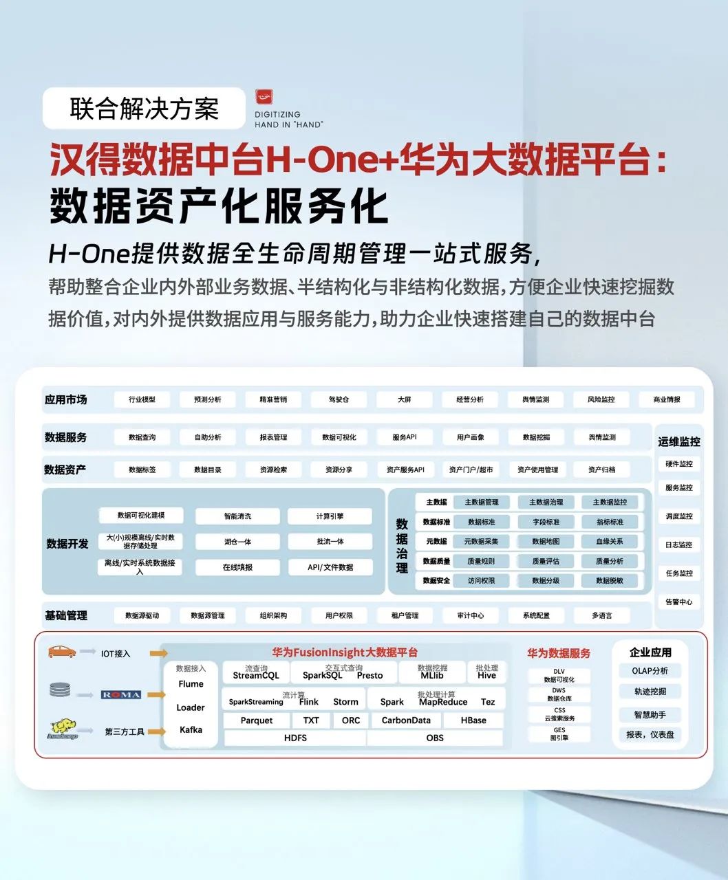 k8凯发官网数据中台H-One提供数据全生命周期管理一站式服务,帮助整合企业内外部业务数据、半结构化与非结构化数据,方便企业快速挖掘数据价值,对内外提供数据应用与服务能力,助力企业快速搭建自己的数据中台。k8凯发官网数据中台H-One与华为云FusionInsight大数据平台、高斯数据库深度融合,实现企业数据要素资产化、数据要素服务化。
