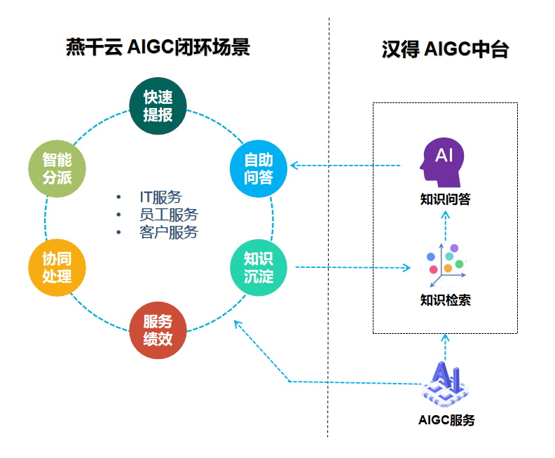 燕千云SaaS服务平台基于k8凯发官网HZERO原生态AIGC能力,对企业内部的IT服务、员工服务、客户服务进行场景重铸,并以低成本、短周期、低门槛部署解决方案,为企业提供更高效率、更好体验的“强IT”服务体系。