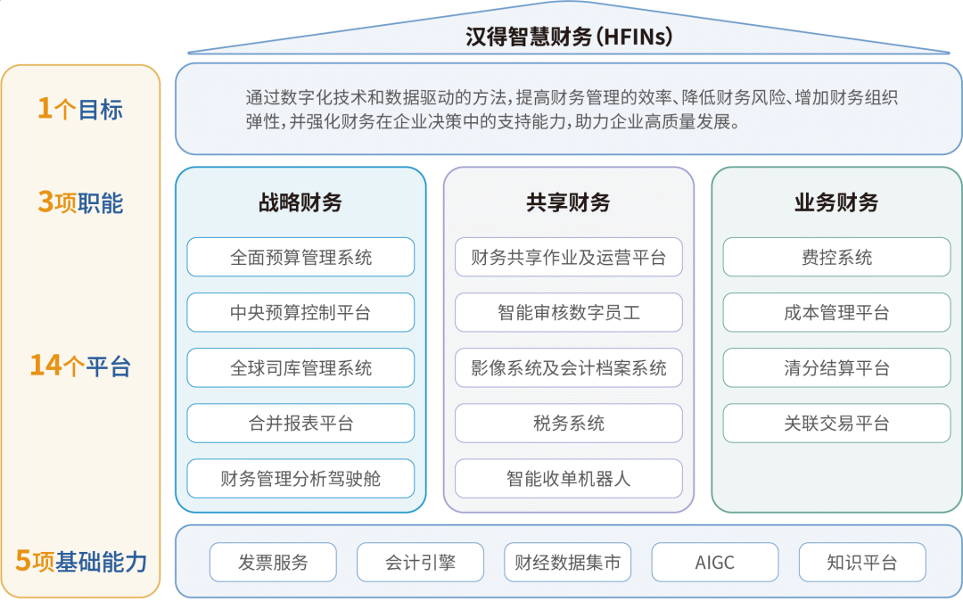 帮助企业实现5G时代的数字化转型升级,形成战略财务、业务财务和共享财务三层管理架构,支撑运营数字化、管理智能化、业财融合化、服务共享化、系统平台化的企业战略目标