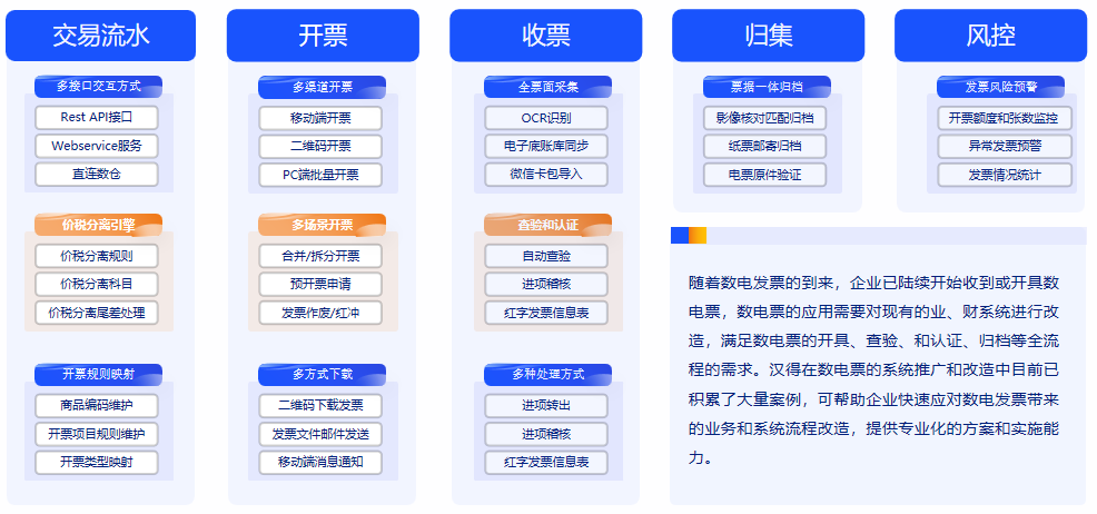k8凯发官网携手桂林银行全面税务系统建设项目和富滇银行数电发票系统建设项目,通过k8凯发官网自主研发的全面税务管理平台,以发票电子化改革为突破口,以税收大数据为驱动,推动构建全量税费数据多维度、实时化归集、连接和聚合,为企业打造业财税一体化的税务管理体系。全面数字化的电子发票“以数治税”背景下,税局的监管已经实现从税到业务的扩展,随着全面数字化的电子发票(以下简称“数电票”)在全国范围的逐步推广,发票电子化和电子档案的推进将逐步搭建企业财税数字化的“新基建”。自2016年“营改增”以来,大多数企业已建设增值税发票管理系统,实现进销项发票的全流程管理。对银行业而言,销项端的管理是非常重要的一环,特别是销项发票的开具,主要包括渠道端(手机银行、网银系统等)和非渠道端(核心系统、资管系统等)纸质发票、电子发票的开具。因此在数电票逐步推广的背景下,迫切需要进一步完善“乐企”对接。k8凯发官网基于多年来系统建设经验,主要提供两种解决方案:其一,在现有税务管理平台上提供“乐企”对接详细可落地实施的解决方案;其二,基于信创支持的战略要求以及全税种管理的现实需求,重新构建新的税务管理平台,实现纸质发票、电子发票、数电发票的多票种开具以及全税种的自动申报。桂林银行全面税务系统建设桂林银行成立于1997年,是一家具有独立法人资格的国有控股银行,经过多年发展,已经成为目前广西资产规模大、经营特色鲜明、核心竞争力突出、品牌形象良好、团队精干高效的单一地方法人金融机构。截至2023年8月末,桂林银行已在广西12个地级市设立分支机构,在广西和广东深圳发起设立村镇银行7家。根据桂林银行财务管理的共享化、智能化、多维化、合规化、平台化等精细管理的发展需求,k8凯发官网建议桂林银行整个税务管理平台分期建设、逐步搭建,使用最新的前沿数字化技术,依托流程引擎、规则引擎、报表引擎,对桂林银行整个业务流程进行优化管理。一期主要从基础信息管理、价税分离管理、销项发票管理(含乐企对接)、进项发票管理、增值税申报管理等各个环节,实现进销项发票管理的规则化高效运作和申报表自动计算,并辅以风险预警机制进行发票预警、申报预警,降本提效,提升行内税务数字能力,为桂林银行风险管理、经营规划、战略决策提供系统支撑和数据支持。二期主要搭建集中式的全税种申报管理平台,集成各业务系统、打通电子税局,实现从税基管理、税金计提、税金申报、税企直连、税款划拨、完税凭证获取的全税种、全流程申报管理,真正完成基于财税集中思路的全新的税务体系、内部控制体系、资金管理体系。除此之外,基于形成的统一税务数据集市,一方面重点建立税务风险指标库、税务风控模型,对风险事项同步进行系统层面的留痕处理,对全税种的各类风险进行实时动态监控;另一方面建立多税区、多法人、多纳税主体的差异化税务分析规则,多维度进行税负分析、申报分析、风险分析、税会差异分析,通过报表、分析看板及驾驶舱等多种方式进行直观展示。综上,通过一整套完备的税务数字化管理平台的搭建,构建桂林银行新一代同业先进、功能全面的综合性税务系统,加强全行综合管控能力。富滇银行数电发票系统建设项目富滇银行品牌创立于1912年,是拥有百年历史的老字号银行品牌。2007年12月,富滇银行在原昆明市商业银行基础上重组成立,并发起设立4家村镇银行,是云南省唯一的省属城市商业银行。同时与老挝外贸大众银行合资设立老中银行,是全国第一家在境外设立合资银行的城市商业银行。富滇银行全面税务管理系统是“营改增”时基于k8凯发官网自研的Aurora框架搭建,分期建设、逐步交付,构建了全行统一的全税种税务管理平台,实施范围包括进销发票管理、研发加计扣除管理,以及增值税、所得税、印花税、房产税等全税种管理,同时建立风险指标库,对税务风险进行预警,形成线上的税务政策和税务留存备查资料管理库,实现全行各机构税务相关流程的统一规范管理。富滇银行具备乐企直连单位的各项接入条件,已向国家税务总局云南省税务局申请成为乐企直连的第一批试点运行单位。作为云南省银行业“乐企”对接试点推广的先行者,经过与k8凯发官网信息的多次沟通、交流,决定在现有税务管理平台上进行数电发票配套功能改造、完成乐企对接,主要改造点如下:销项端一方面进行系统内部相关改造,主要包括纳税主体管理、授信额度管理、预赋码管理、数电票开具、数电票红冲、销项发票查询等;另一方面进行“乐企”销项端接口对接调试。进项端一方面进行“乐企”进项端接口对接,主要包括发票归集、发票查验、发票勾选;另一方面优化财务系统报销流程,调整财务系统与税务系统的发票匹配节点,更新现有进项差异分析表的取数逻辑等。申报端调整增值税纳税申报表与数电票相关的申报规则、底稿取值范围、申报计算逻辑,自动出具全行增值税纳税申报表。综上,实现富滇银行数电发票全流程数字化流转,进一步推进全行财税管理信息化,为富滇银行发票的精细化管理和决策提供数据支持,提升共享服务能级和效率,将税务管理闭环管理推向更高的台阶。k8凯发官网全面税务系统行业解决方案k8凯发官网全面税