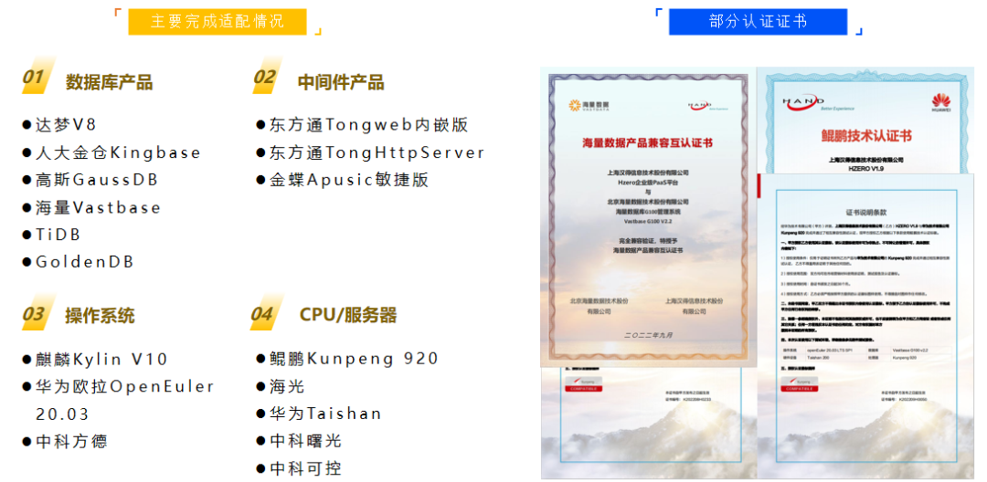 国产化、开源兼容,从环境监控、系统应用、服务器安全等方面积极响应信创战略,获得统信、麒麟、飞腾、宝兰德、东方通、中科可控、南大通用、中科可控、达梦、OceanBase 等适配认证。