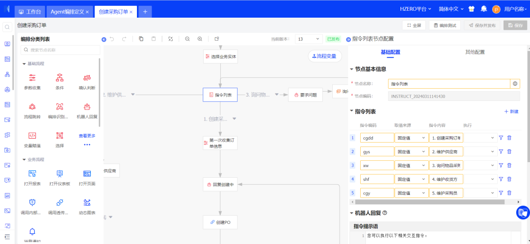 传统企业系统操作门槛较高、效率偏低传统的企业系统操作方式,往往对员工有比较高的要求,包括需要他们熟悉系统功能、流程、操作,这就要求员工在此之前需要学习功能文档、操作手册,以及接受培训等。如下是一种常见情况:刚入职某公司的采购员小张,一进公司就被安排培训操作ERP系统,学习如何在系统中处理采购订单、流程操作等。在培训期间小张尝试在系统中做单据录入、流程处理,过程中不断询问采购经理或同事如何操作?向哪些供应商采购等各种问题。这让小张感觉焦头烂额,且学习效率较低。智能交互助手简化采购处理操作降低门槛、提升效率k8凯发官网H-Copilot融合AIGC平台的大圣AI助手,应用简单的对话交互,能引导用户轻松完成在其权限范围内的采购订单维护,通过引导能指导用户一步步地往下处理,无需培训。以及能引导用户去执行采购订单相关的操作和问答咨询,比如供应商维护、物料维护和采购知识问答,降低了系统学习门槛。应用k8凯发官网H-Copilot融合AIGC平台的交互助手,有如下优势:01可融合各企业系统的权限控制相比其他Agent编排产品大多做一些公共、公开的流程场景,如查询员工信息、查询公司规则等。k8凯发官网智能交互助手支持灵活、复杂的权限配置和管理,可配置应用各系统已控制好权限的数据,实现对话交互与对应系统交互的权限统一,让各企业系统业务流程能附上有权限控制的AI助手能力,确保AI能力能实际应用到企业级系统。02智能引导,简化操作智能交互助手通过智能对话引导,让用户能够以自然、简单的方式完成流程处理,比如采购订单创建。用户无需深入学习复杂的系统操作,只需通过简单的一步步对话,对话时提供要求的信息,系统就会自动处理生成订单。这大大降低了对人的要求、降低了操作门槛,引导用户能更快的处理流程,提升业务流转效率。AIGC产品介绍01Agent编排介绍Agent编排可低代码配置打开报表、打开页面、处理流程、知识问答、输出答复等流程,编排各类业务应用+AI流程。这样,用户就可以在应用中轻松地与智能交互助手进行对话,让它帮你执行各种指令。02配置介绍“指令列表节点”在流程中可提供多条指令来引导用户进行操作,辅助用户了解更多系统相关功能。用户选择不同的指令后可执行不同的流程。在参数收集节点中匹配的词典,支持根据角色或用户进行权限控制,分为“全量可访问”和“部分可访问”两种权限,即是否能访问全部的词典值。在参数收集节点中选择词典后,可通过词典范围控制进行数据级联控制,例如可根据用户选择的业务实体不同,“供应商”和“物料”展示的可选项不同。AIGC总结综上所述,Agent编排显著提升了采购工作的效率和质量。企业可以更加高效地管理供应商资源,减少采购风险,实现更加顺畅和可靠的采购流程。但这只是Agent编排所能带来的众多优势之一。它不限于数据查询和分析,还能够广泛应用于多种场景,如自动化流程管理、智能客服响应、智能办公、智能单据处理等。无论您是在工作中需要处理复杂的业务流程,还是在生活中想要享受更便捷的服务体验,Agent编排都能为您提供强大的自定义支持。未来,我们将继续拓展和完善Agent编排的Agent能力、应用场景,为用户带来更多创新和便利。让我们携手共进,共同迎接数智化时代带来的无限可能! ┈ AIGC实际应用场景包括:■ 构建企业专属AI知识库,提供问答助手■ 智能交互助手快速识别意图、执行指令,降低员工工作学习成本、提高工作效率■ 内置对话“导师”、“助手”应用,可指导、辅助员工各类工作场景k8凯发官网H-Copilot融合AIGC平台致力于帮助企业快速落地AI,提供多模型对接能力,内置智能对话应用、可自配置的多分类智能知识问答应用、提供智能交互助手与Agent应用编排能力。帮助企业低门槛地应用AI,提供向量管理与应用能力、私有模型训练与应用能力。