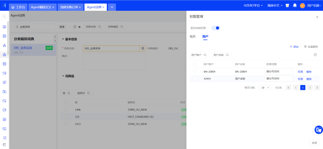 在参数收集节点中匹配的词典,支持根据角色或用户进行权限控制,分为“全量可访问”和“部分可访问”两种权限,即是否能访问全部的词典值。