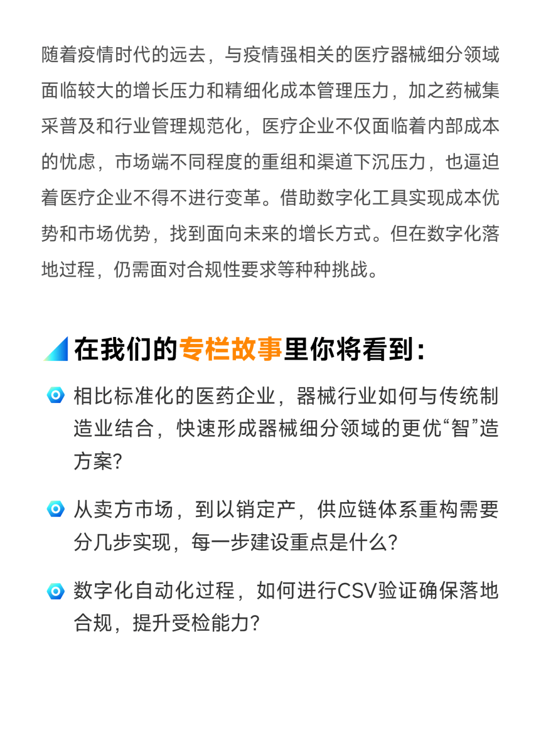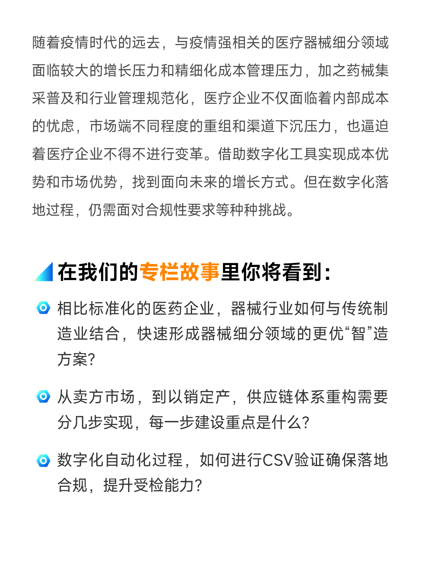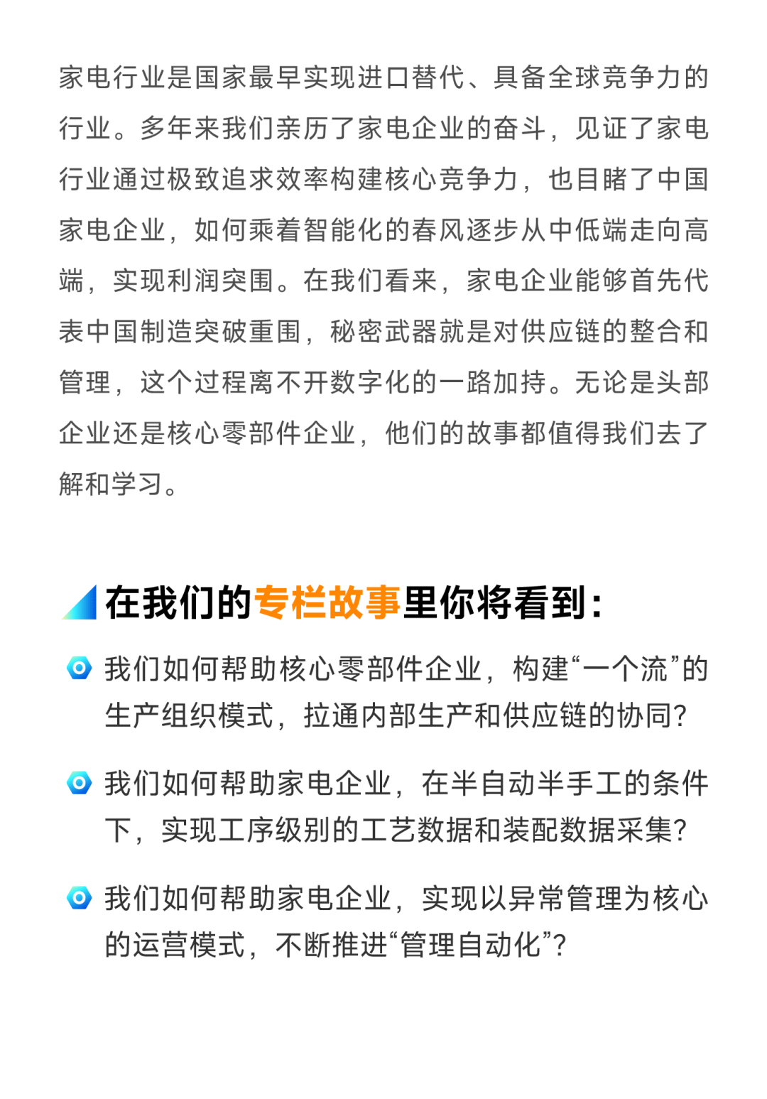 我们的制造企业数字化故事分享也将以行业作为立足点,通过访谈内外部专家及领先企业、专题直播及文章等等多形式开展。
