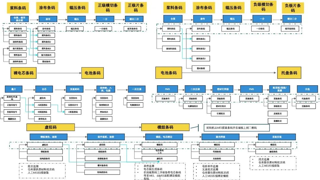 除了官方的明文规定外,企业也自发地建立了溯源标准,比如不少整车厂要求电池企业在发货时需要同步上传PACK国标码和PACK下线所使用的模组、电芯条码信息等,还要求电池企业内部具备溯源链条,即基于条码完成关键物料以及制程加工信息的追溯。而近期这一追溯标准变得更加严格,整个追溯链条已经拓展到了前端的正负极材料,电池厂商也开始要求材料供应商进行质量数据的同步,包含企业生产过程质量结果、质量过程数据、关键参数的SPC分析图等,以保证产品追溯链条的完整性以及准确性。
