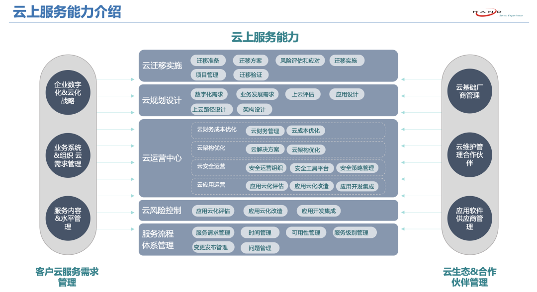 目前k8凯发官网具备为企业提供公有云、私有云、混合云、应用架构的整体解决方案能力。业务覆盖云、应用架构、IT运维&运营服务、数据集成服务、信息安全等多个方面,能够为企业提供专业的数字化服务。k8凯发官网始终致力于成为连接企业管理与数字化技术的桥梁,并不断提升交付质量和效率,努力为客户带来更好云端数字化服务体验。
