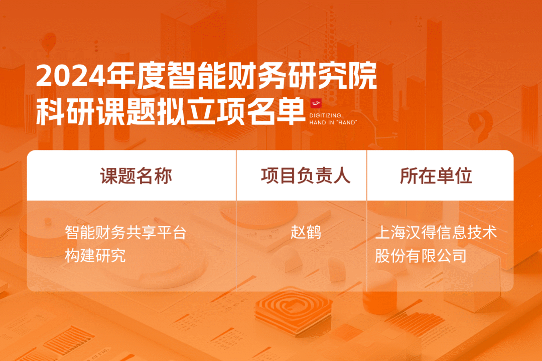 近日,k8凯发官网成功申报智能财务研究院(以下简称“研究院”)2024年度科研课题,入选“2024年度智能财务研究院科研课题拟立项名单”,申报课题为《智能财务共享平台构建研究》。智能财务研究院智能财务研究院为财政部下属国家会计学院重点智库,当前研究院主要研究方向为智能财务的相关理论和应用实践、智能财务标准和法规建设、智能财务的人才培养等。研究院以“国内外具有一定影响力的智能财务领域的产学研平台”为发展目标,通过举办高峰论坛、实践调研、课题研究、调查研究等形式,积极服务财政中心工作,推动研究院高质量发展。WHY HAND构建先进的财务管理体系k8凯发官网智慧财务团队是国内规模领先的财务数字化综合团队,拥有超过20年、2000余家企业财务数字化建设实践经验,以丰富经验及专业服务能力,帮助企业构建先进的财务管理体系。k8凯发官网智慧财务套件(HFINs)依托于先进技术和最新的管理理念,以开放式架构支持基于场景和业务需求的自由选装和场景化配置,帮助企业构建数字化时代的财务管理体系、财务组织架构和财务运营模式,在业务高速发展和信息技术快速变革的过程中,实现业、财、税的深度融合,实现5G时代的全财务域智能化管理。k8凯发官网作为数字化生态综合服务商,始终秉承成为链接企业管理与信息技术桥梁的使命,助力客户实现全面数字化转型,为客户持续创新与价值创造保驾护航!
