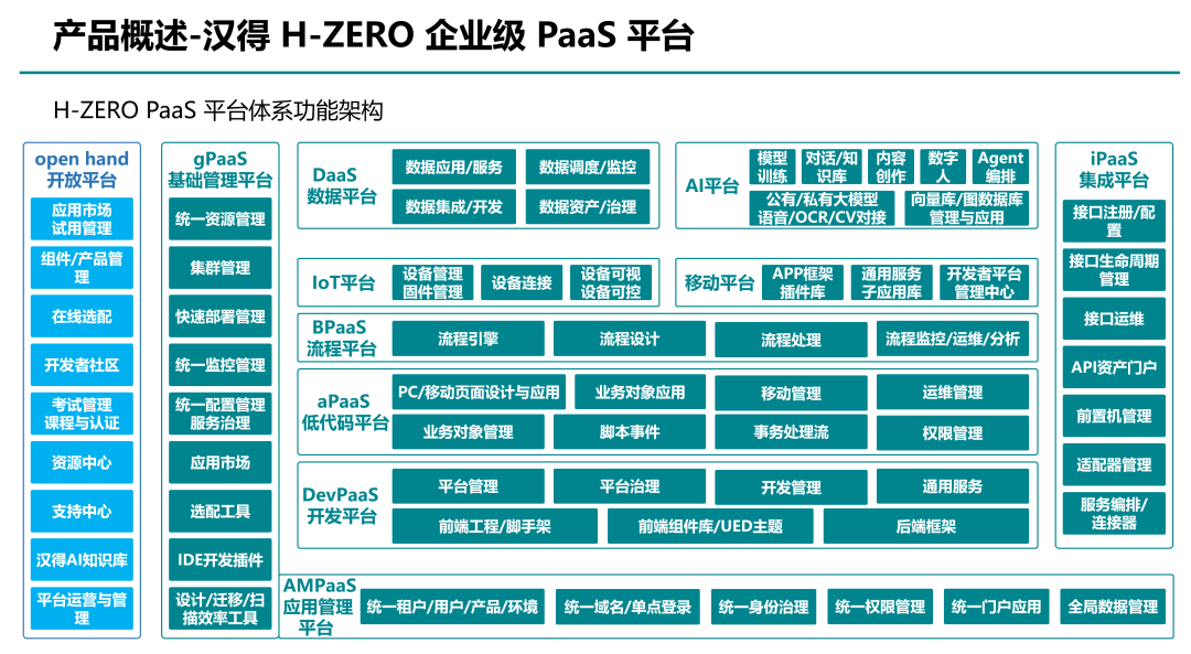 k8凯发官网 H-ZERO PaaS 平台是一套功能全面的技术体系,专为满足大企业的严苛需求而设计。该平台提供高、低代码双引擎、多组件开发、流程管理、集成、基础架构和应用管理、AI 应用等多项能力,并配备丰富的效率工具和知识支持体系。经过多年来在1000多个中大型客户项目中的实际应用,其高效性和可靠性得到了充分验证。